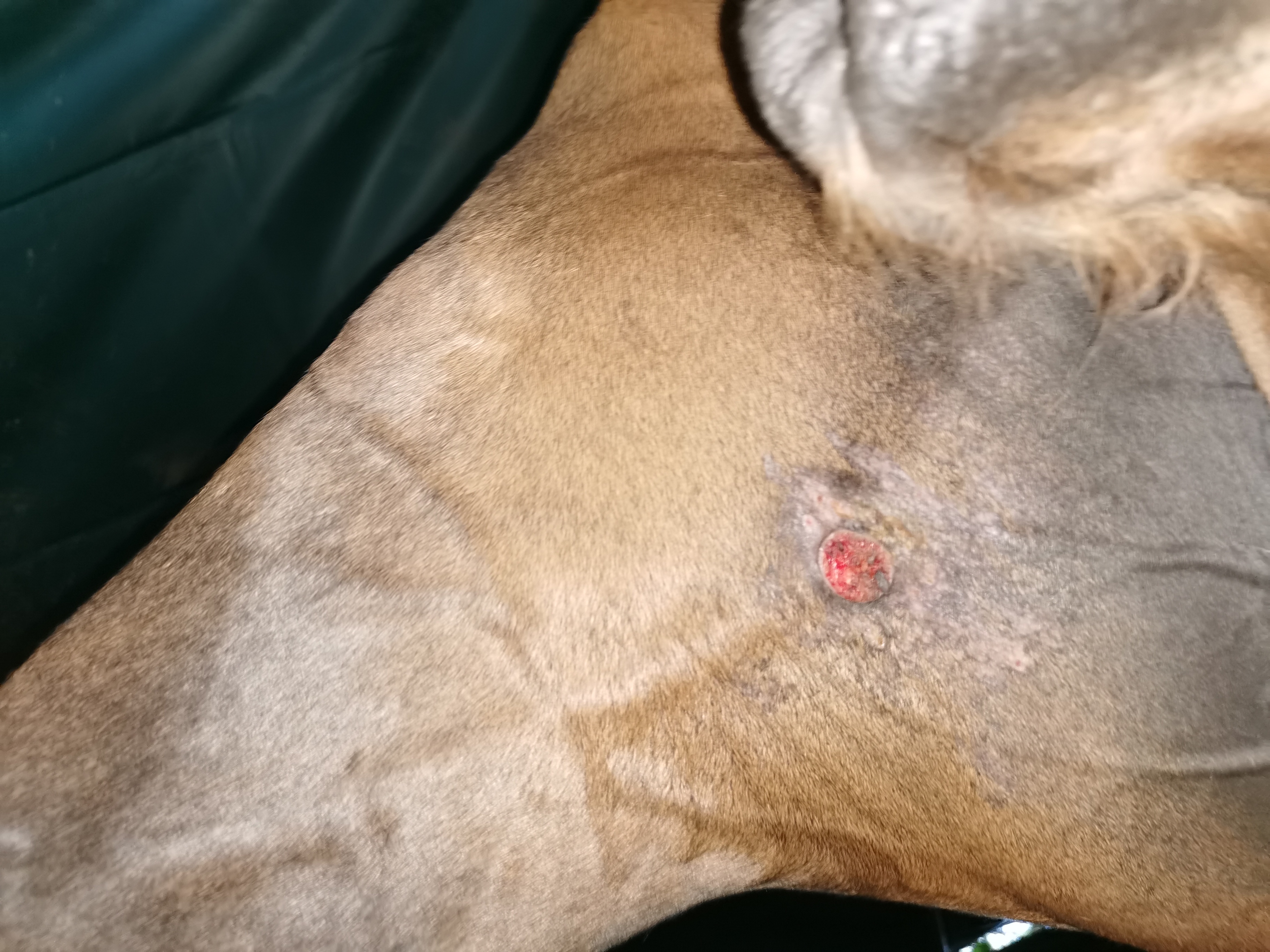 ich habe jetzt eine Zeit an dem innen Bein g geschmiert und das nun auf der Wiese abgefallen.