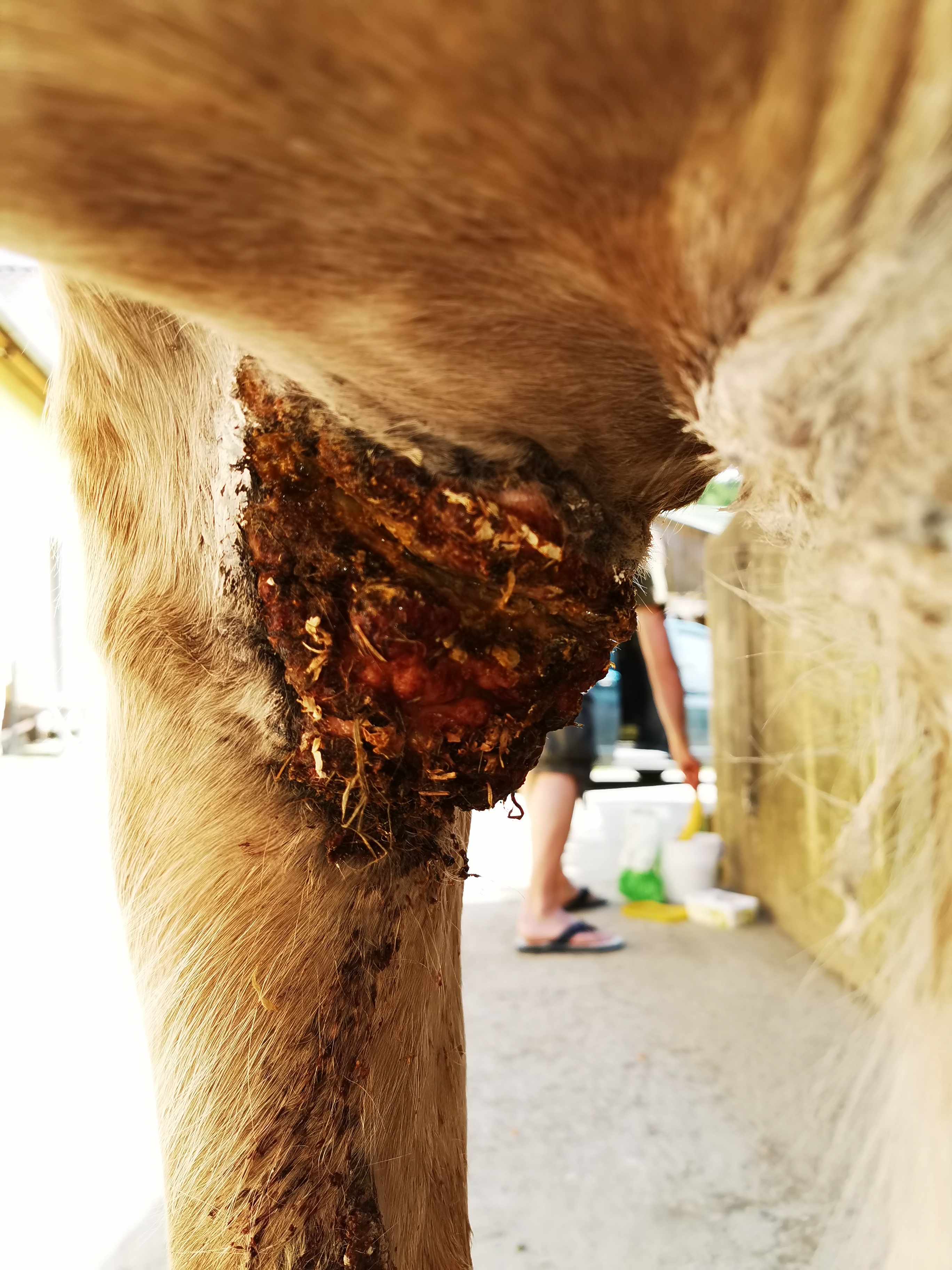 Sind ja noch nicht viele Tage vergangen, aber meiner Meinung nach ist es zumindest nicht schlimmer geworden. Wir denken, dass das ganze irgendwann abfällt. War auch die Meinung der Tierärztin.