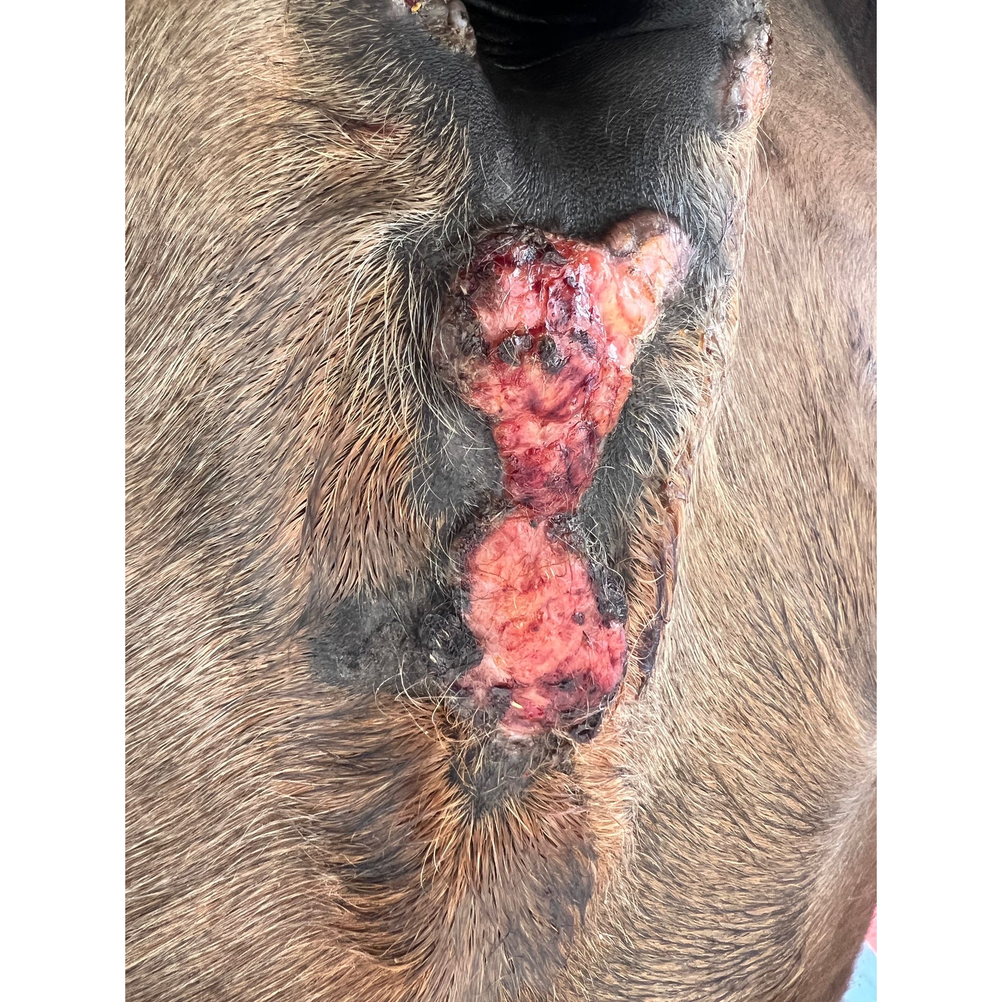 Guten Abend Wir schmieren nun seit 7 Tagen. Er mag das schmieren nicht mehr so gerne, es was aber nie mehr so schlimm wie am 2. Tag, an dem man ihn nicht mehr halten konnte. Wir schmieren alles 1:1. Bei Sarkoid Nr 1 kratzt er sich, was dazu führt, dass das Sarkoid häufig blutig ist (Dies macht er me...
