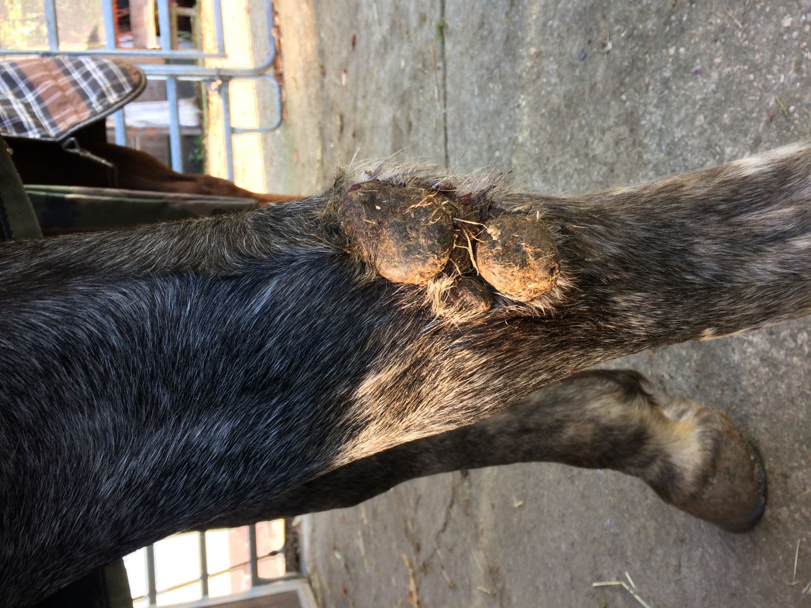 Ich merke, dass die Reaktion auf den Salbe immer weniger wird, nachdem der Tierarzt auch keinen Rat mehr hatte, habe ich mich dann viel über das Internet schlau gemacht und bin auf Euer Forum gestoßen. Meine Newmarket ist jetzt leer und ich habe Compx bereits bestellt. Der riesige Knubbel den ihr auf dem vorletzten Bild seht ist gestern abgefallen.