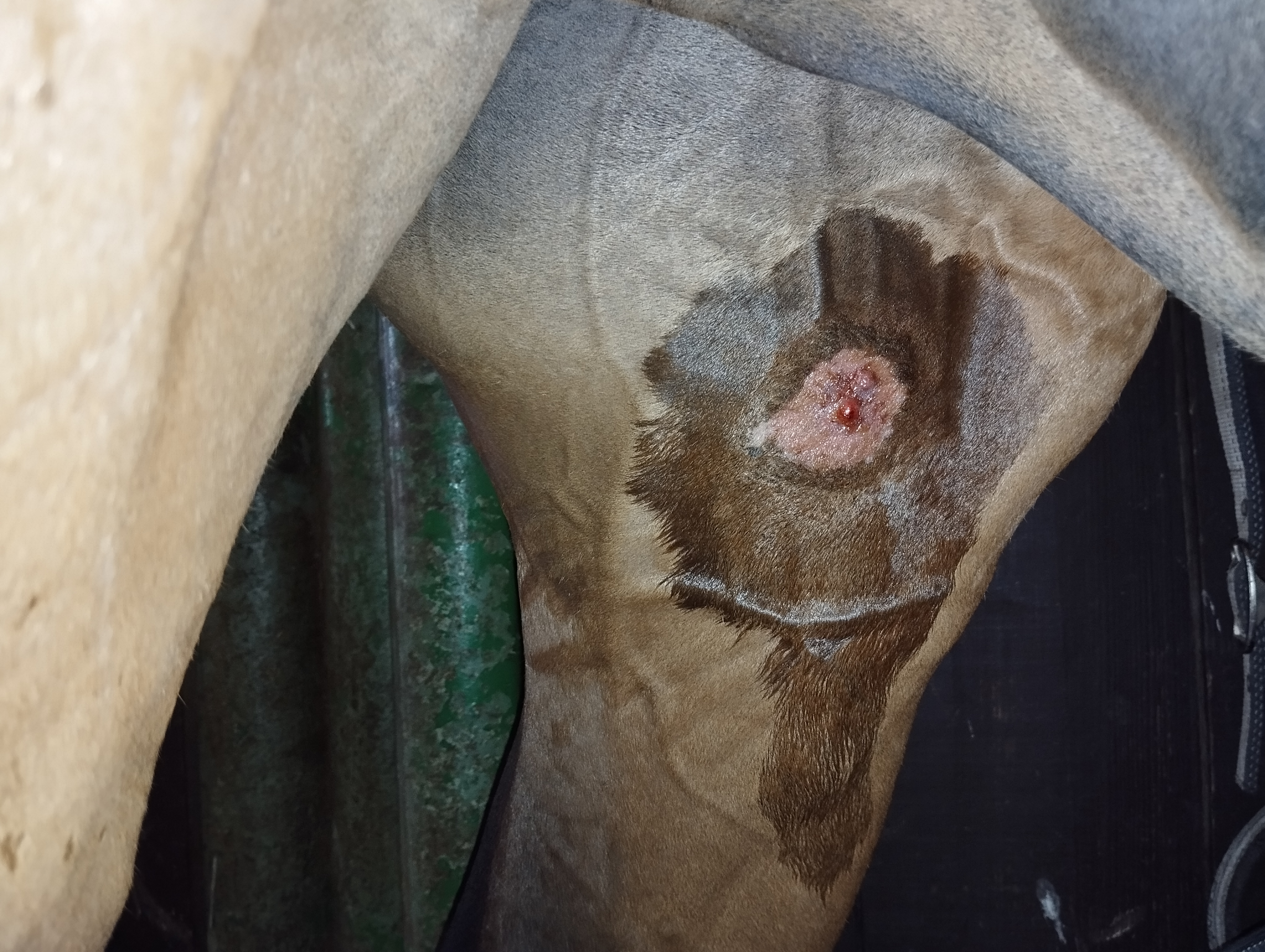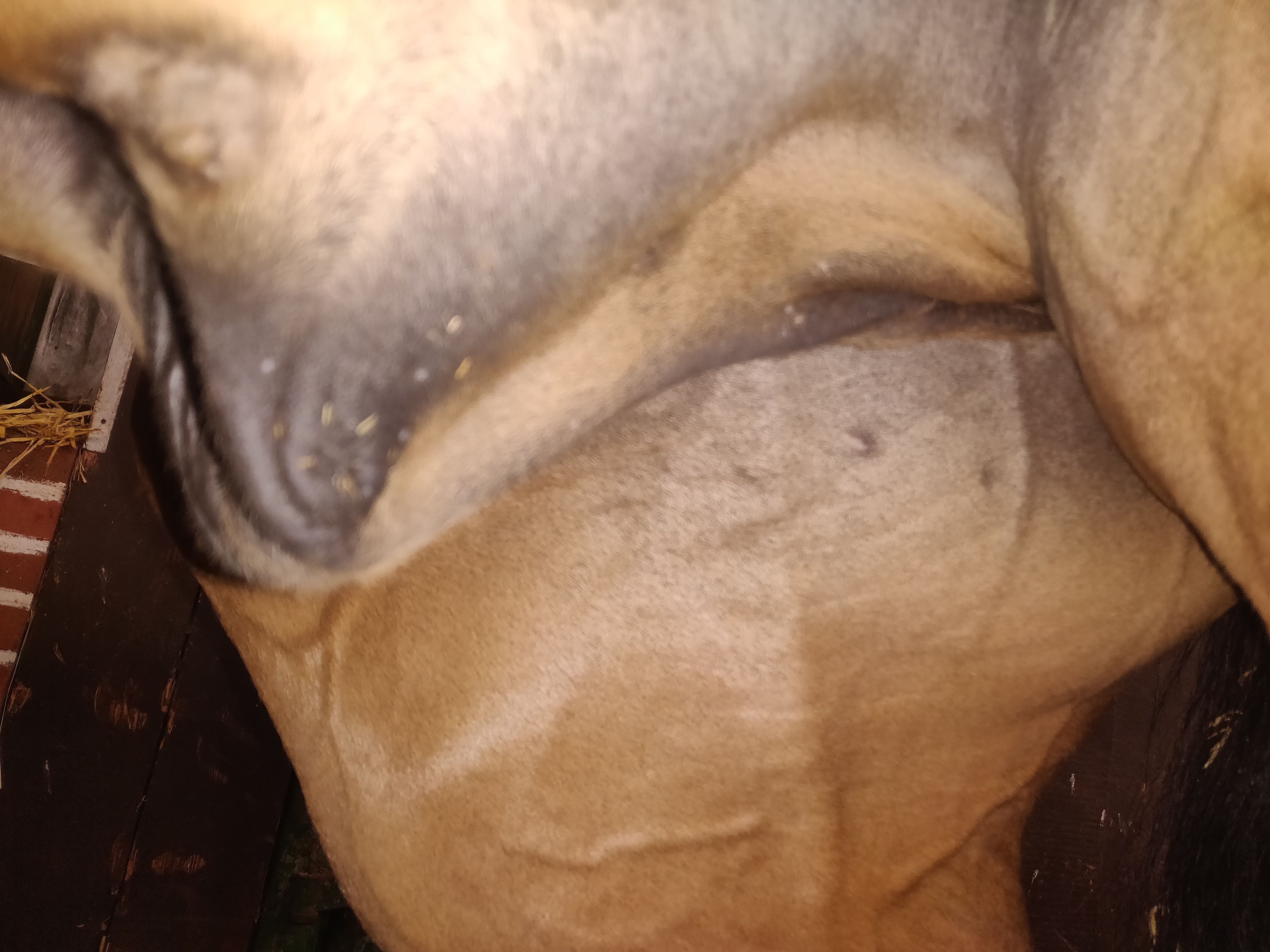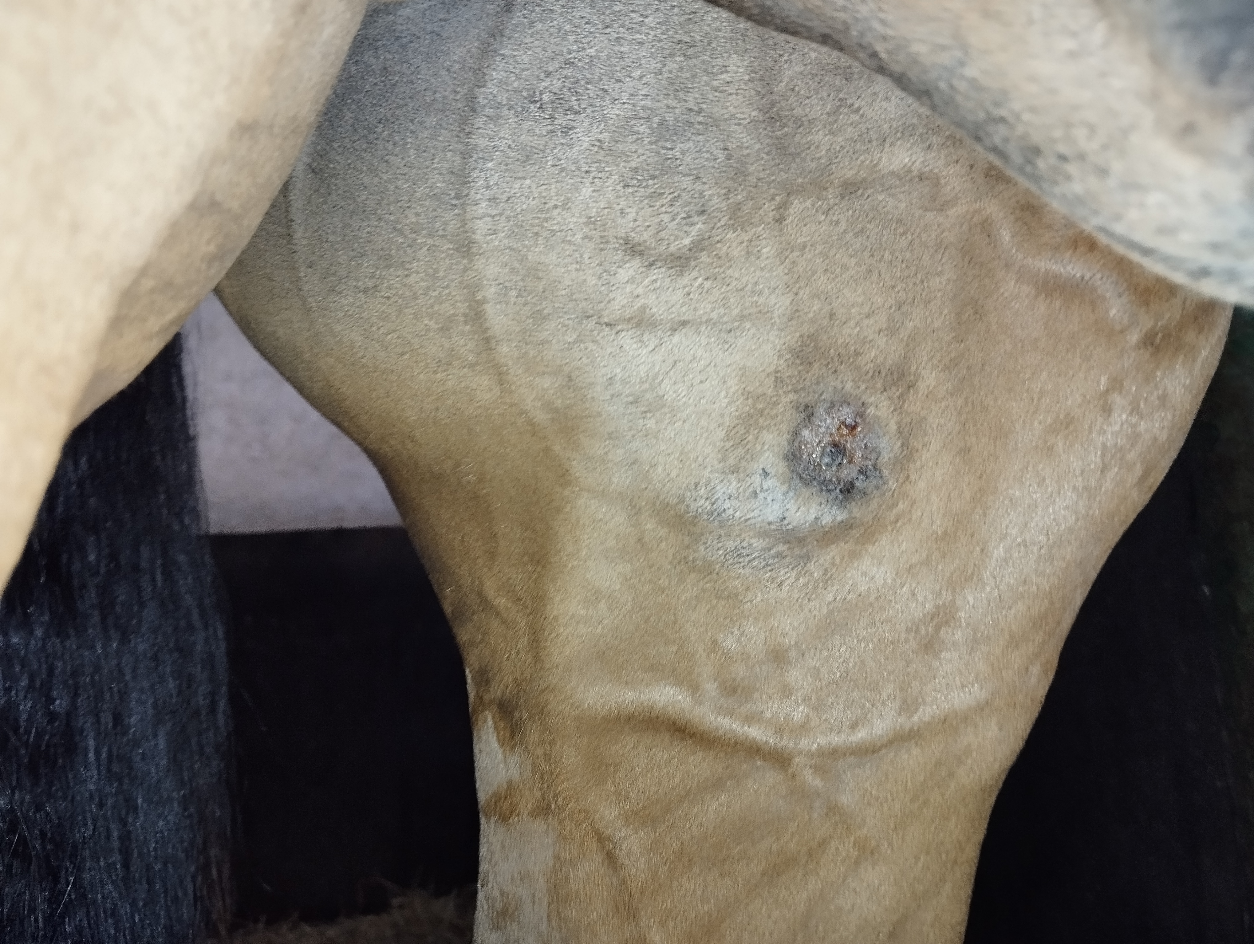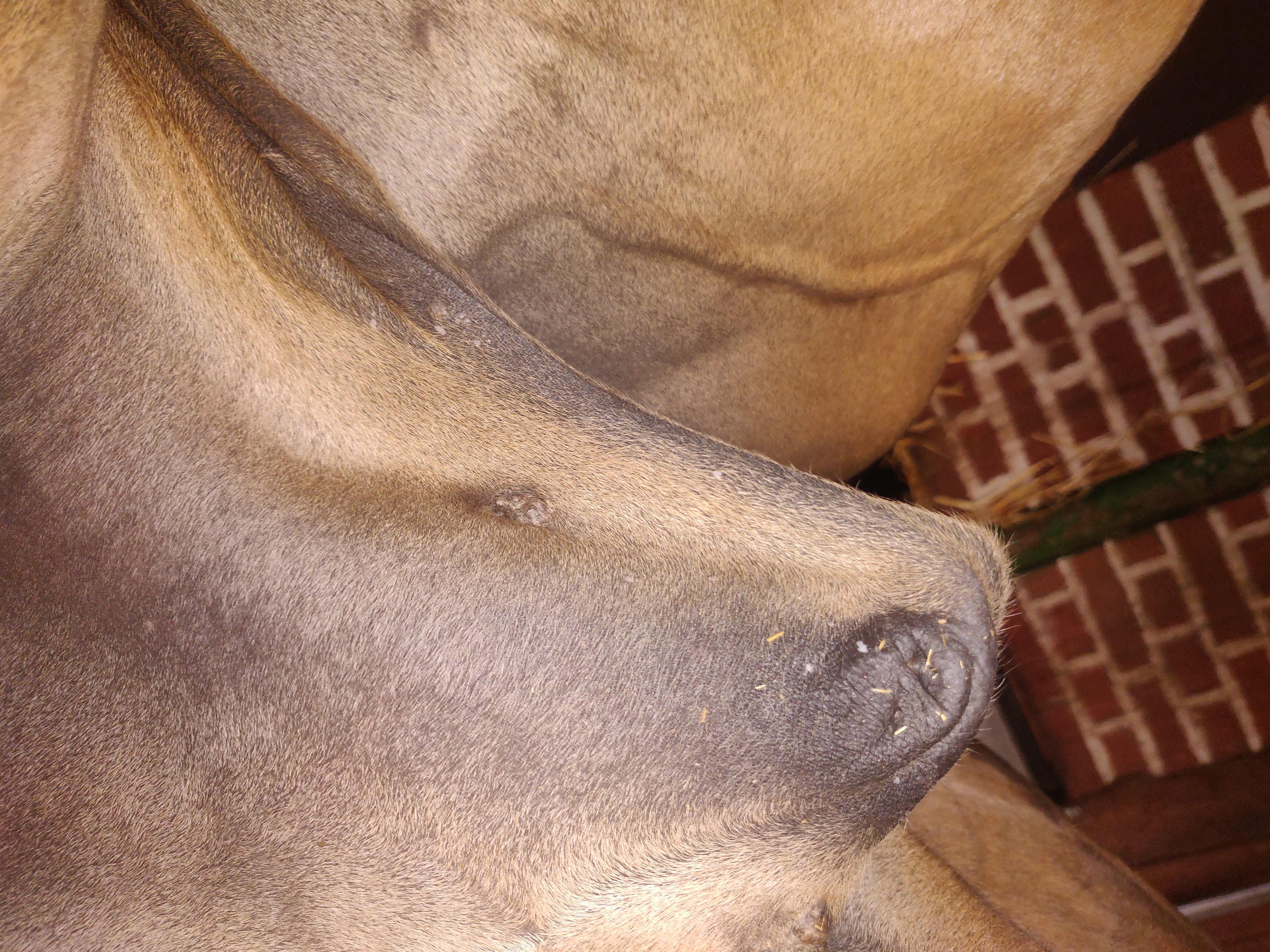Das größte Sarkoid ist am Hals, dann gibt es noch einige kleinere Sarkoide an der Schlauchtasche und an der Innenseite des Hinterbeines. Fotos der Sarkoide werde ich noch hochladen.