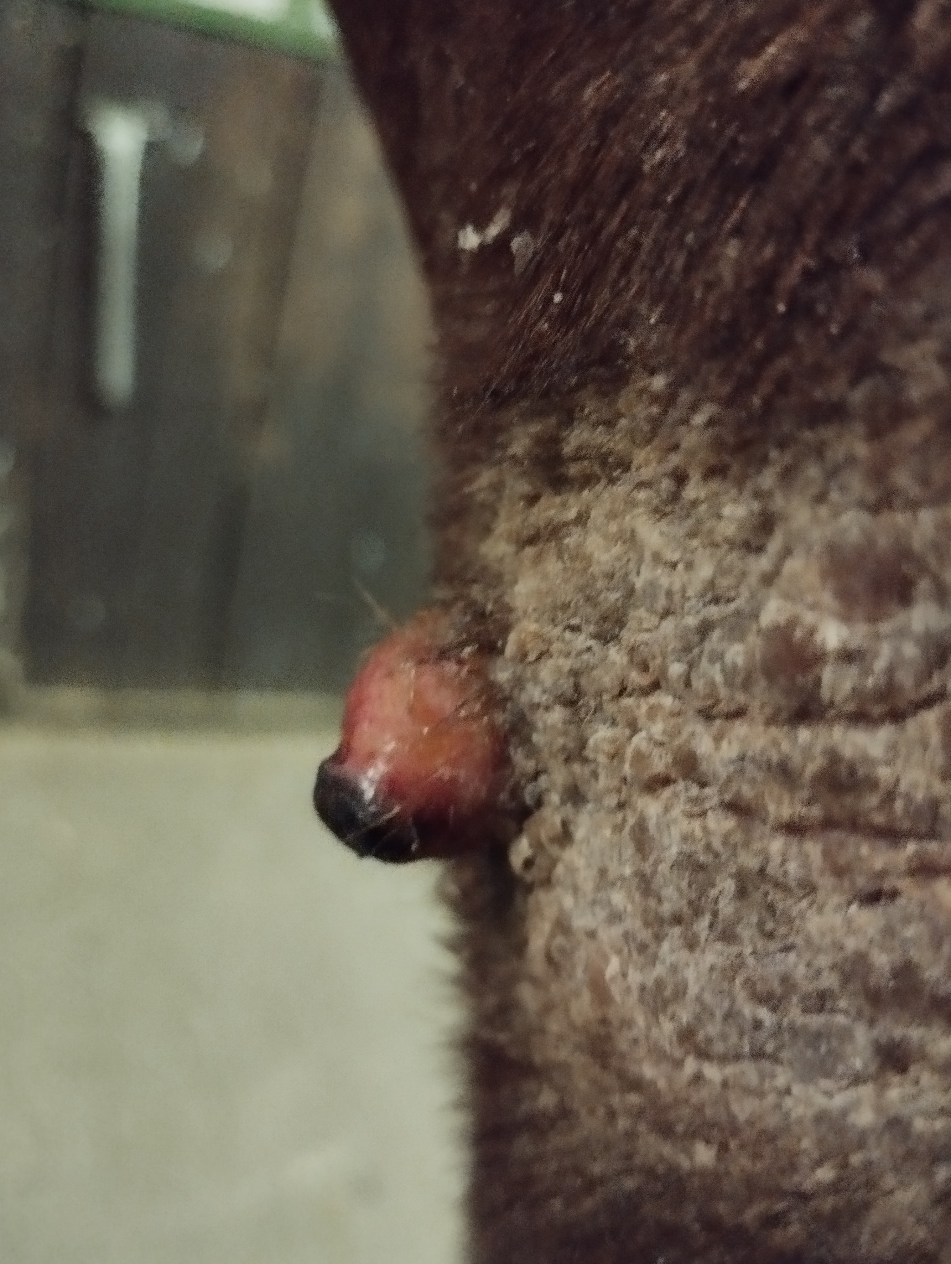 Sarkoid Nr. 1 verhält sich auch sehr kurios. Die große "Warze" auf dem Sarkoidgewebe rotiert nach unten, sitzt dabei aber immer noch sehr fest auf der Haut. Keine Ahnung was das wird :?