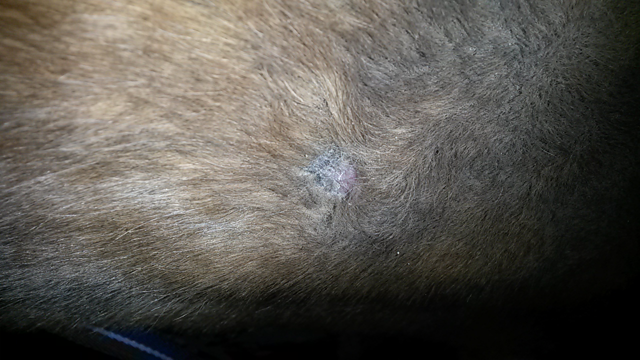 Heute dann leider doch ein Rückschlag. Beim Laufenlassen in der Halle ist meine Stute hinten ausgerutscht und die eine OP-Wunde ist an der Heilungsnaht wieder aufgerissen.