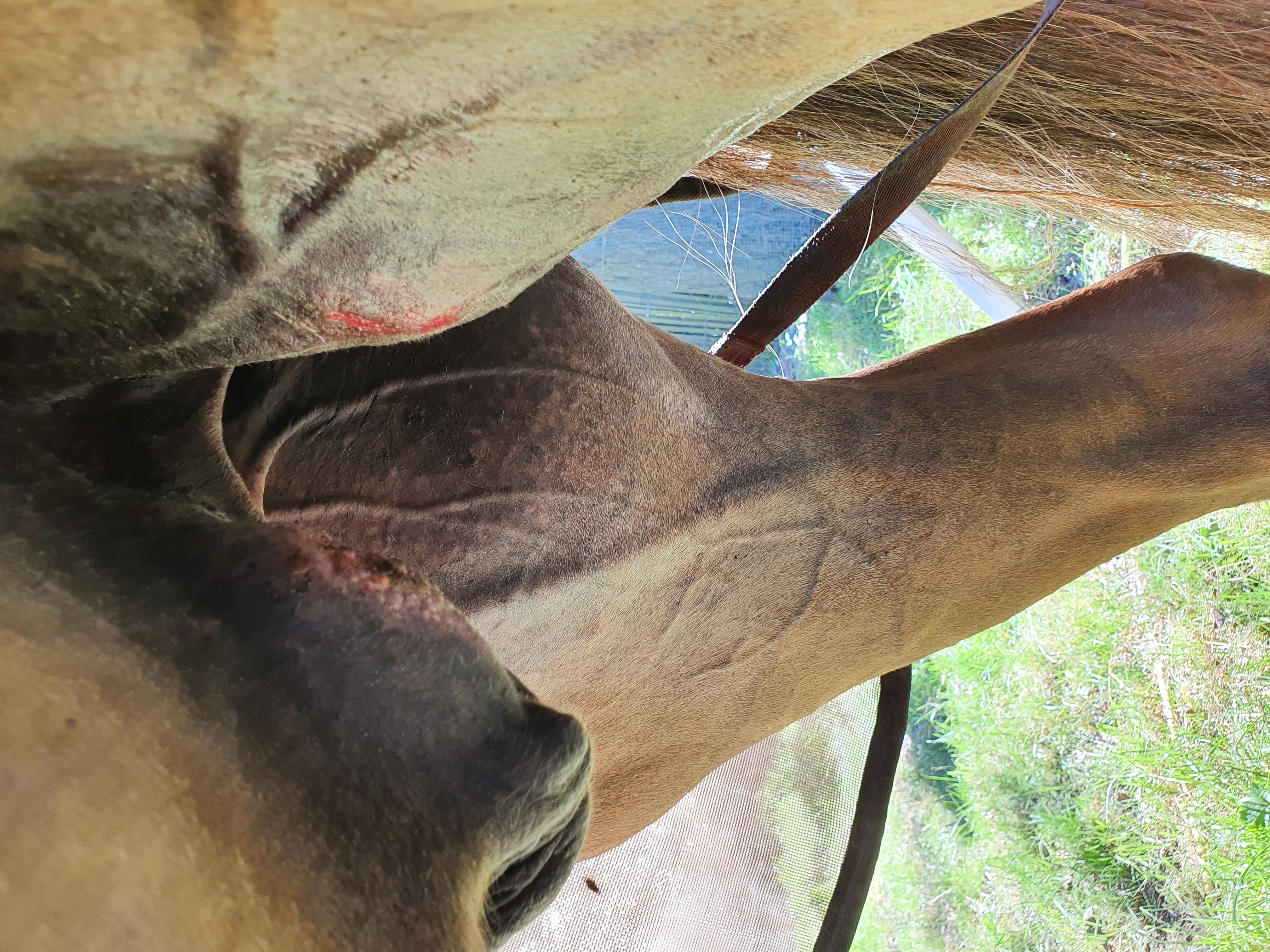 Das alles kann ich aber besser aufnehmen, wenn wir heute Abend zu zweit sind und sie müde von der Wiese holen... Dann liefere ich nochmal bessere Bilder. Die beiden neuen in der Achsel habe ich eben noch mit 1:2 geschmiert...