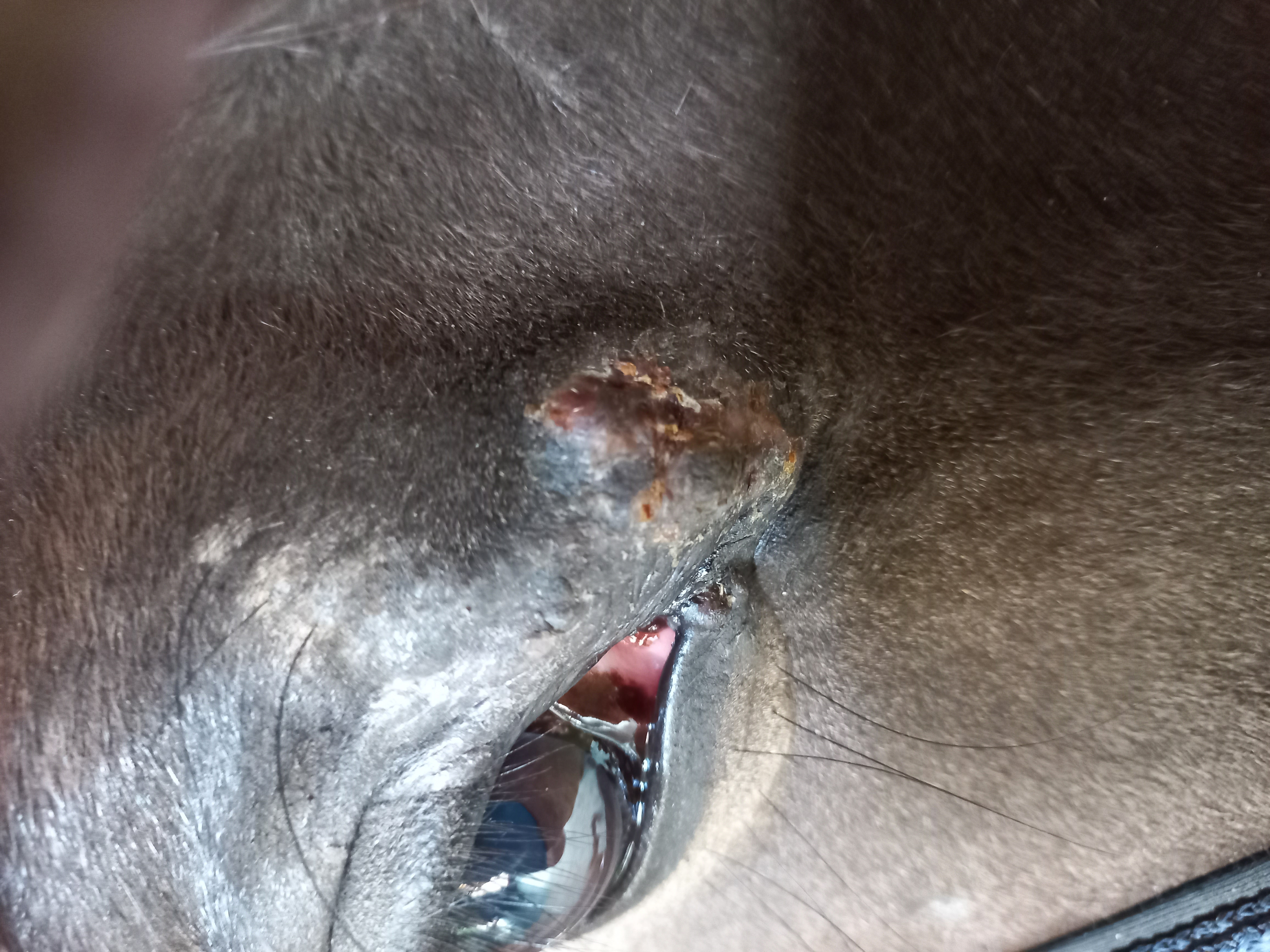 Jährling mit sarkoid am Auge