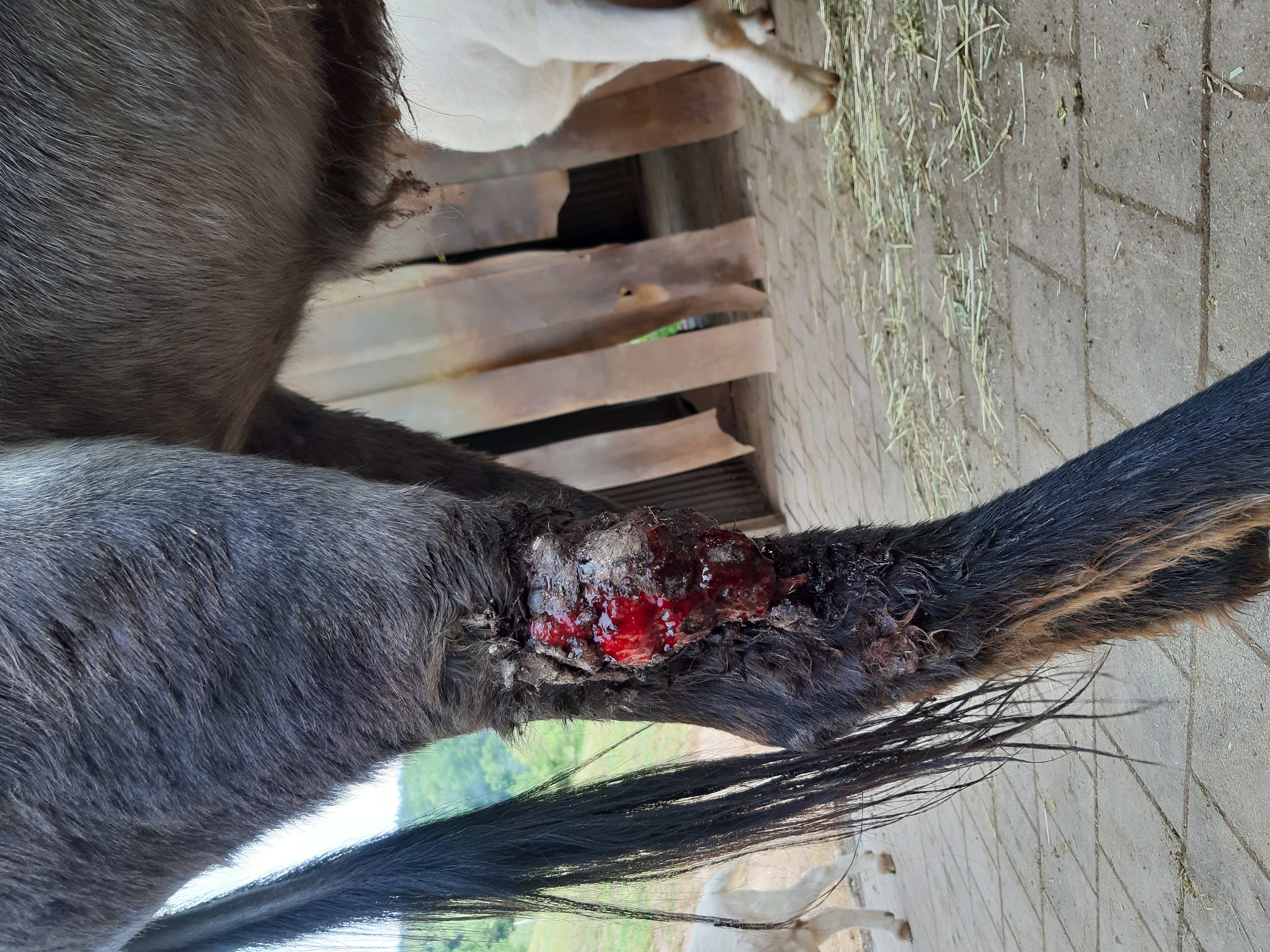 Im Fell drum herum hat sich inzwischen viel Kruste, Eiter-Blut verfestigt/ verklebt, sieht ziemlich über aus, habt ihr das immer ausgewaschen? Ich will das Sarkoid durch "unnötiges" reinigen am Bein nicht reizen. Reize ich es damit überhaupt.