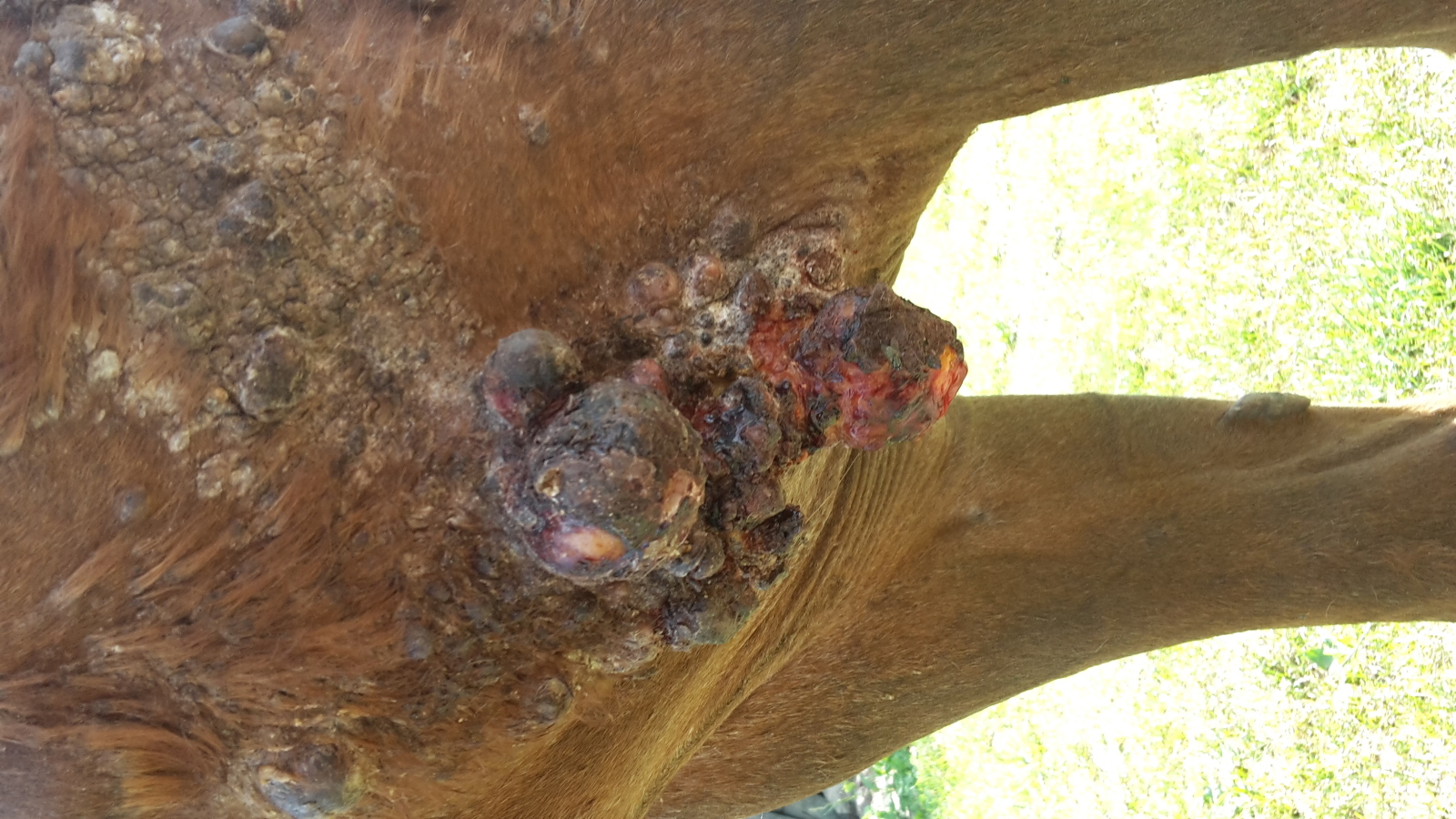 Heute gibt's die versprochenen Bilder. Man kann hinten am Bein die weißen stellen gut erkennen. ...das ist am eintrocknen. Was haltet ihr davon? Haben schon die 3. Spritze hinter uns