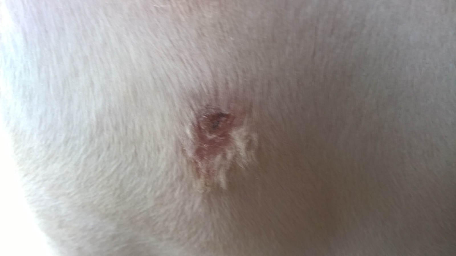 Wie versprochen auch ein Foto von der Brust. Die Kruste ist vorgestern abgegangen und Ich finde es sieht sehr gut aus. Habe heute mit viel Vaseline die Stelle eingecremt und ein wenig compx genau auf die Mitte geschmiert.