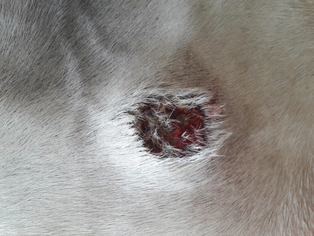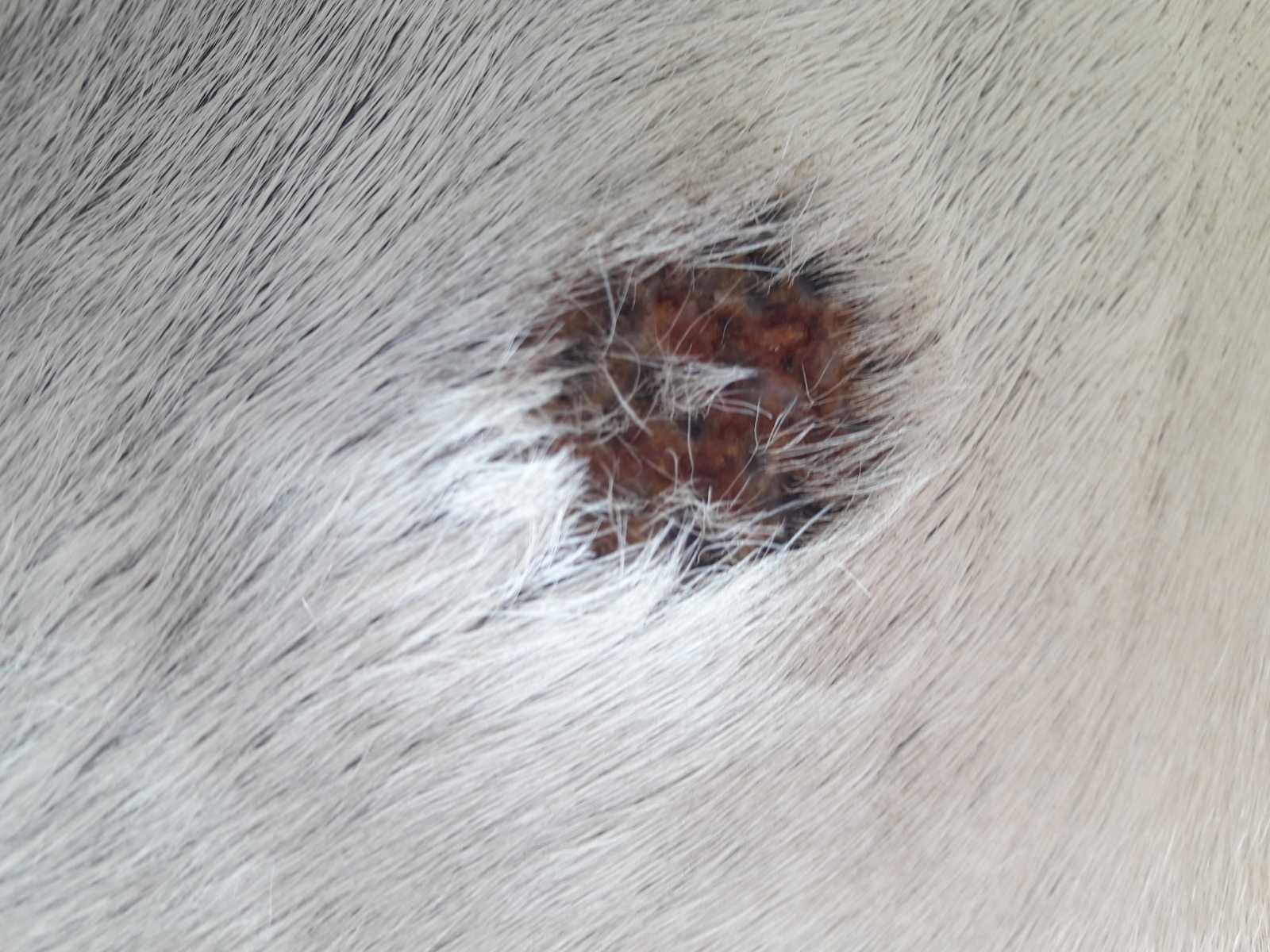 Ich habe heute ausnahmsweise mal das Sarkoid unterm Bauch gewaschen und anschließend die Haare geschnitten, um einen besseren Blick zu kriegen. Gestern hatte ich 1:1 geschmiert und heute schon eine Reaktion. Damit mache ich jetzt weiter. Aufgehört hätte ich zwar eh noch nicht, aber meine erste Freude, dass wir damit durch sind, ist auch wieder verflogen. Danke Mano für deinen geschulten Blick!