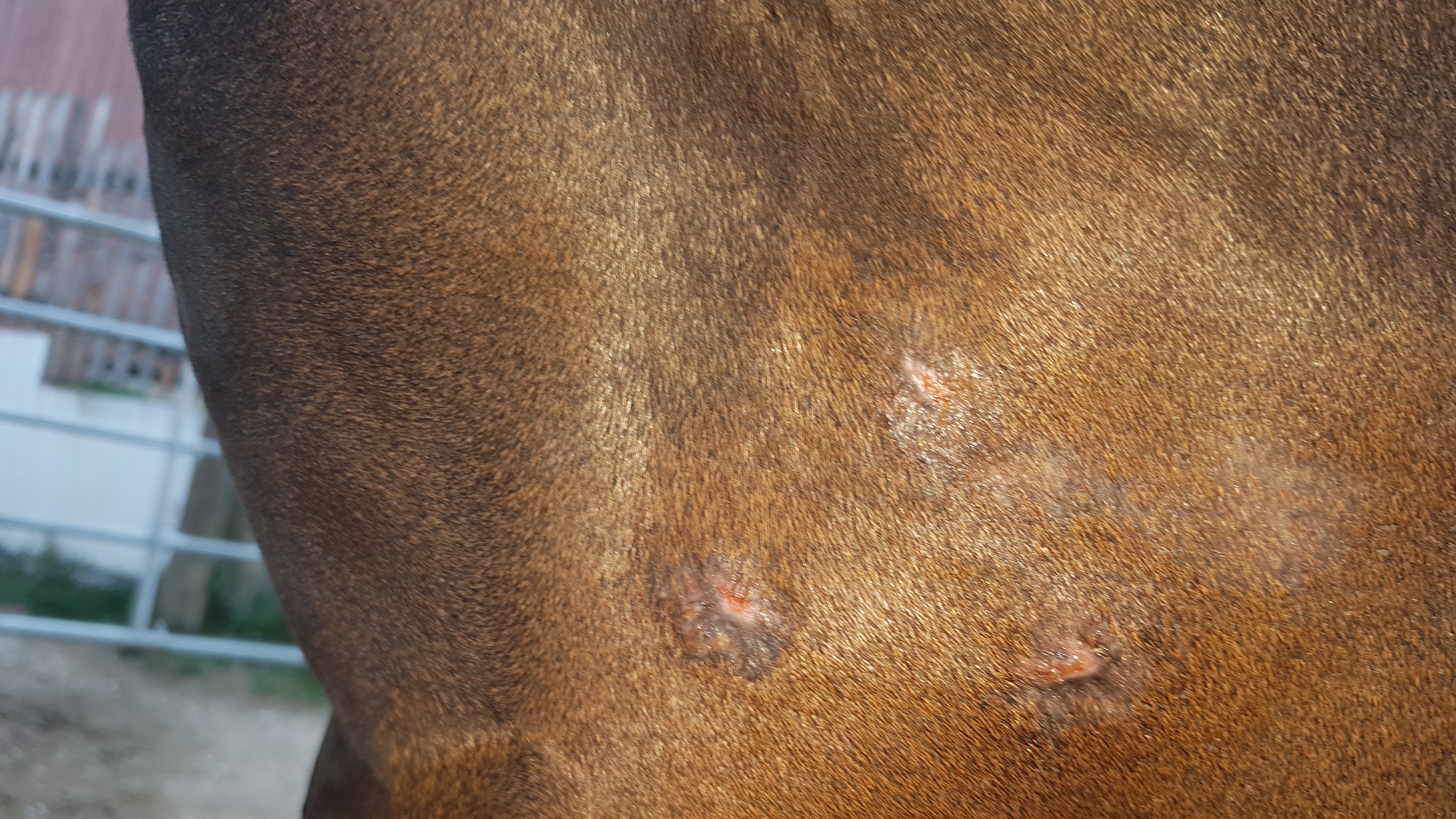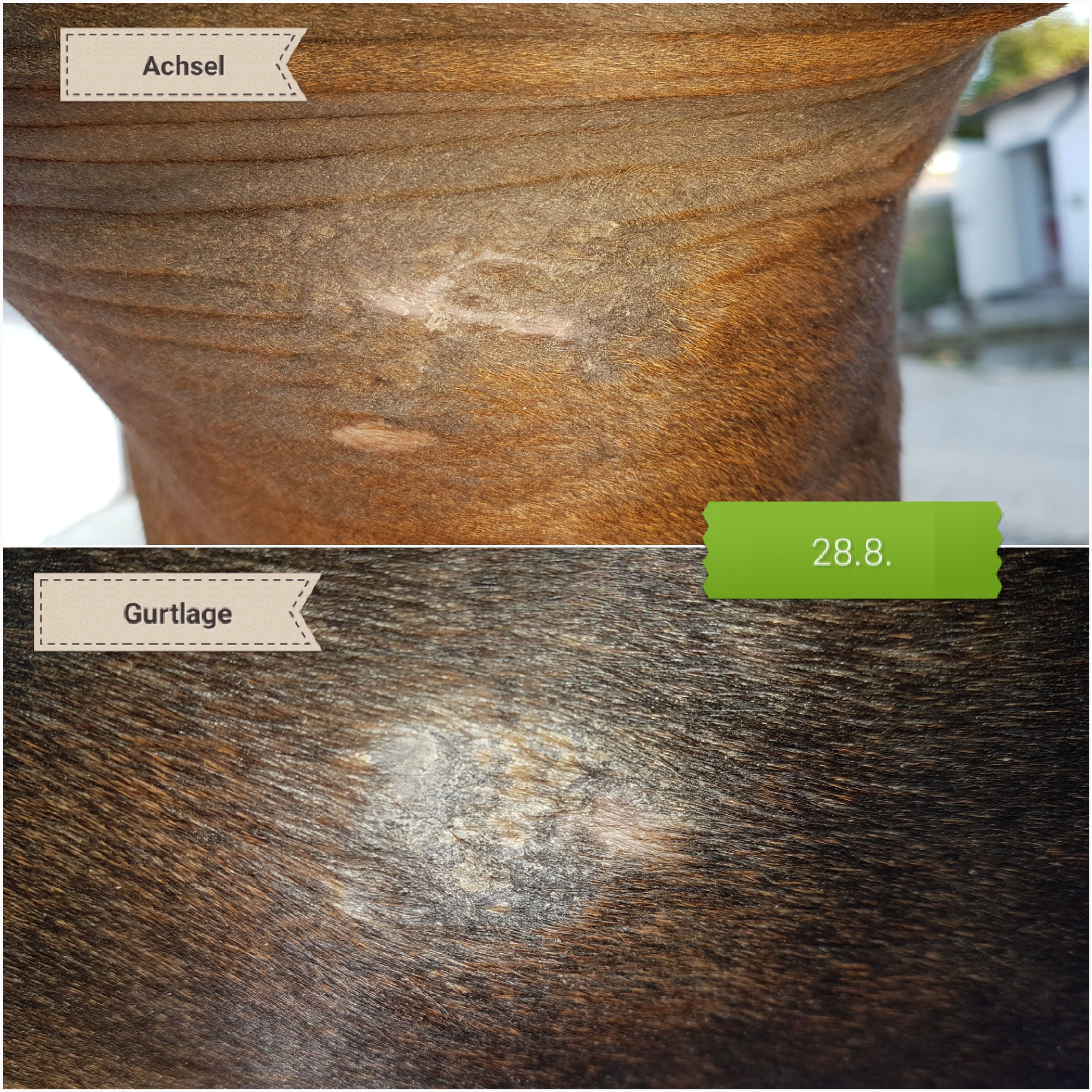 Der Rest nervt mich im Moment, überall wieder Krusten. Dabei hatte es schon so gut ausgesehen. In der Gurtlage krustet es jetzt an anderer Stelle als da, wo das ursprüngliche Sarkoid war. Ein Spaß, ich sag's Euch! :roll: Aber wem erzähle ich das?!