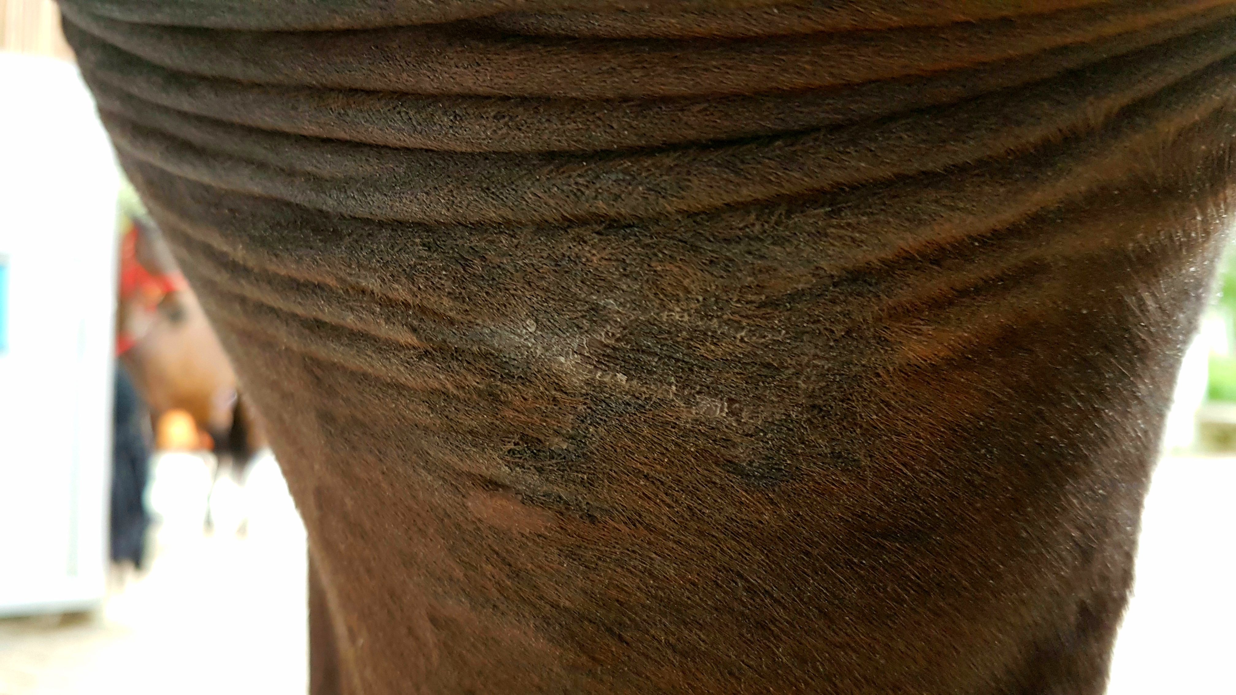 Heute sah die Brust schon besser aus. Ich schmiere überall Wund- und Brandsalbe - außer an der Ecke in der Gurtlage, die kriegt noch CompX ab. Beim Rest werde ich mal etwas zuwarten.