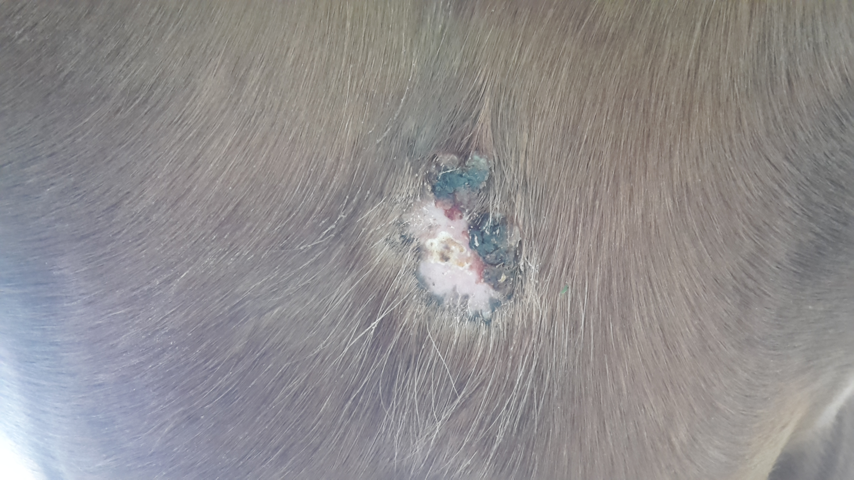 Das erste kleine Sarkoid an der Brust wurde entdeckt, da ich mich damals noch nicht wirklich auskannte vertraute ich dem TA der es abgebunden hat. Es verschwand auch erstmal.