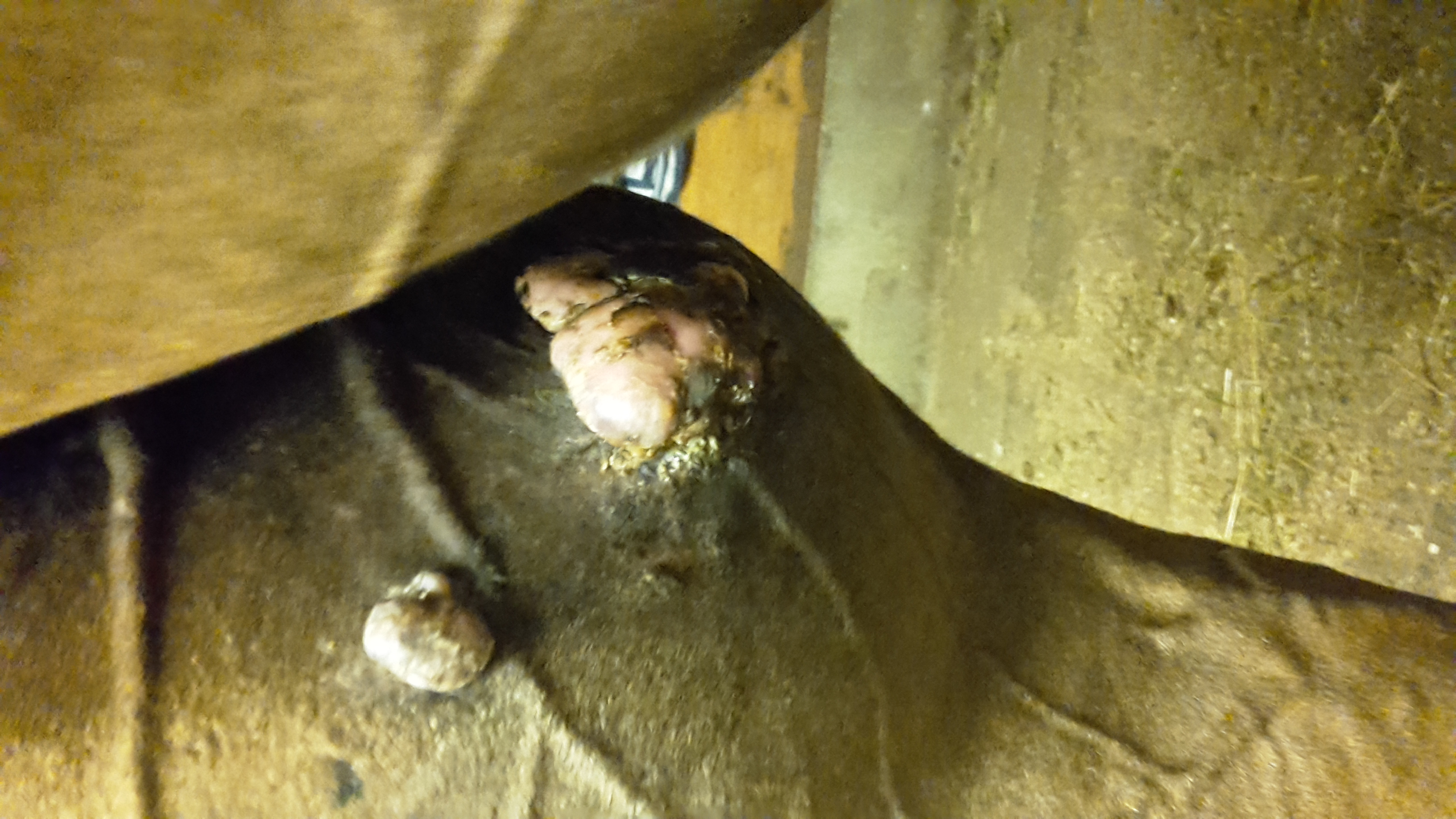 Das ES zwischen den Hinterbeinen (ich denke es ist ein nodulares, Bilder folgen) ist inzwischen so groß das an reiten nicht mehr zu denken ist. Da es auf nichts reagiert haben wir den großen Teil nochmals abgebunden, er fiel auch ab.