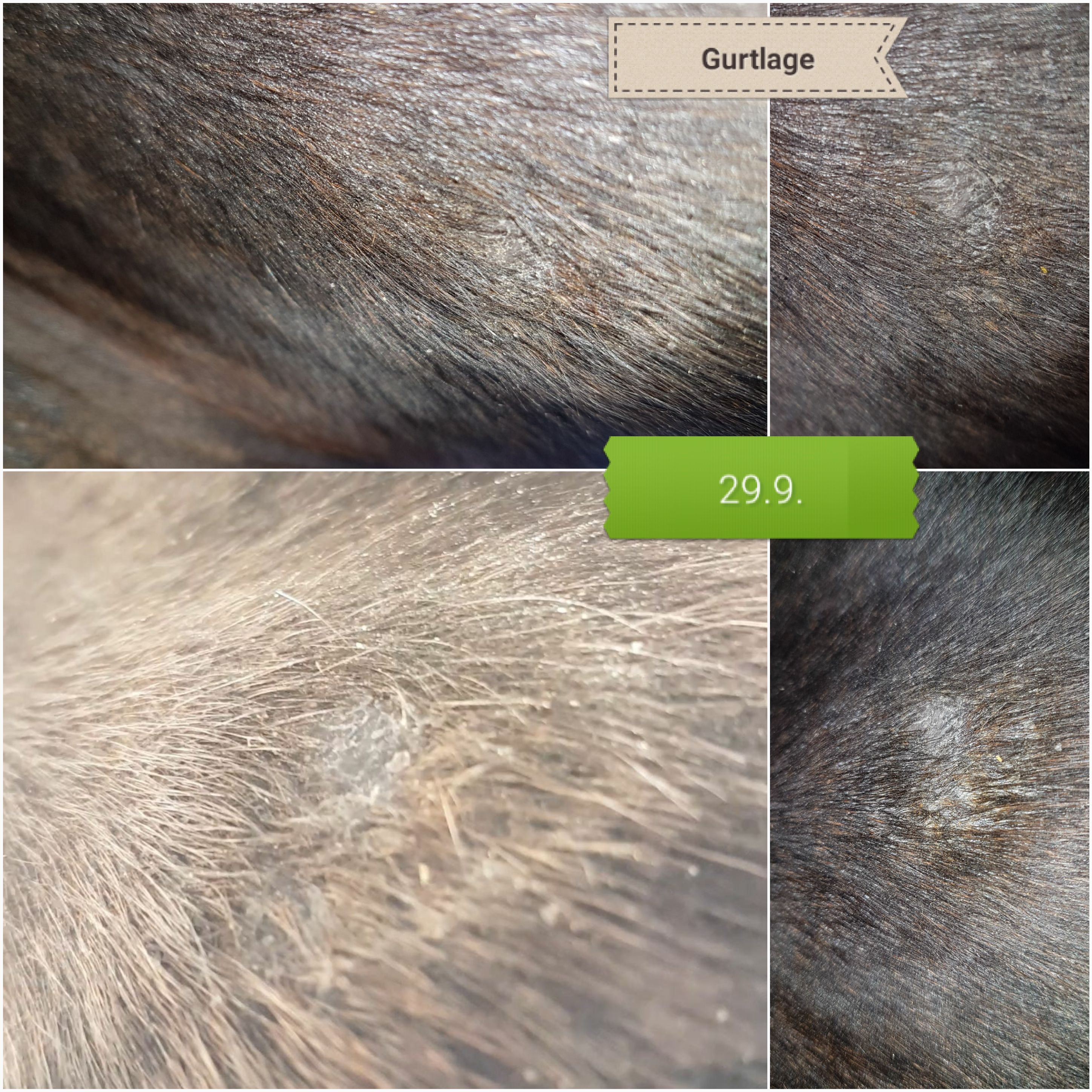 An der Achsel sprießen mehr und mehr Haare und in der Gurtlage ist auch nur noch ne kleine Ecke schuppig. Das ist im Moment das einzige Sarkoid, was noch CompX abbekommt. Hier habe ich das Gefühl, dass es immer kleiner wird. Beim Rest warte ich, in welche Richtung es sich entwickelt.
