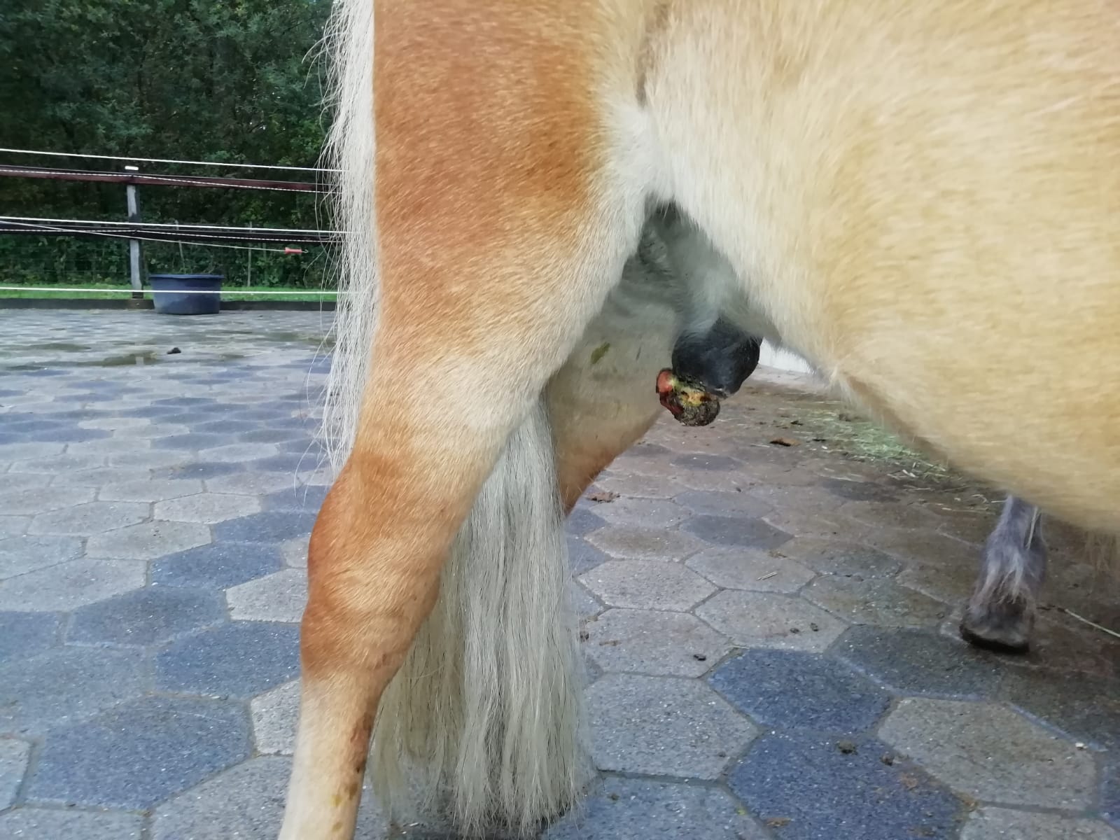 Ich hatte Buddy Ende 2018 an eine Familie zur Verfügung gestellt. Der Vertrag sollte erst am 22.12.2019 enden, leider wollte die Familie ihn im Juli nicht mehr weiter halten. Ich habe Buddy natürlich zurück genommen und ihn tierärztlich versorgen lassen, als ich sah, dass sich etwas an der Schlauchtasche gebildet hat. Er wurde in der Tierklinik am Sorpesee in Sundern operiert (am 04.07.2019). Nach der OP versicherte die Tierärztin mir, dass es sich um ein Lipom handelt und man nichts weiter machen müsste...ich habe das Geschwür nicht untersuchen lassen. Keine vier Wochen später war das Geschwür deutlich schlimmer wieder da. Nach Rücksprache mit einer zweiten Klinik (Boyenstein aus Beckum) wurde Buddy erneut am 18.09.2019 unter Vollnarkose dort operiert. Dieses Mal lies ich das Geschwür einschicken und bekam die Diagnose equines Sarkoid. Leider sieht man jetzt schon, dass das Sarkoid wieder gekommen ist. Rasant schnell wachsend nach innen wie nach außen.