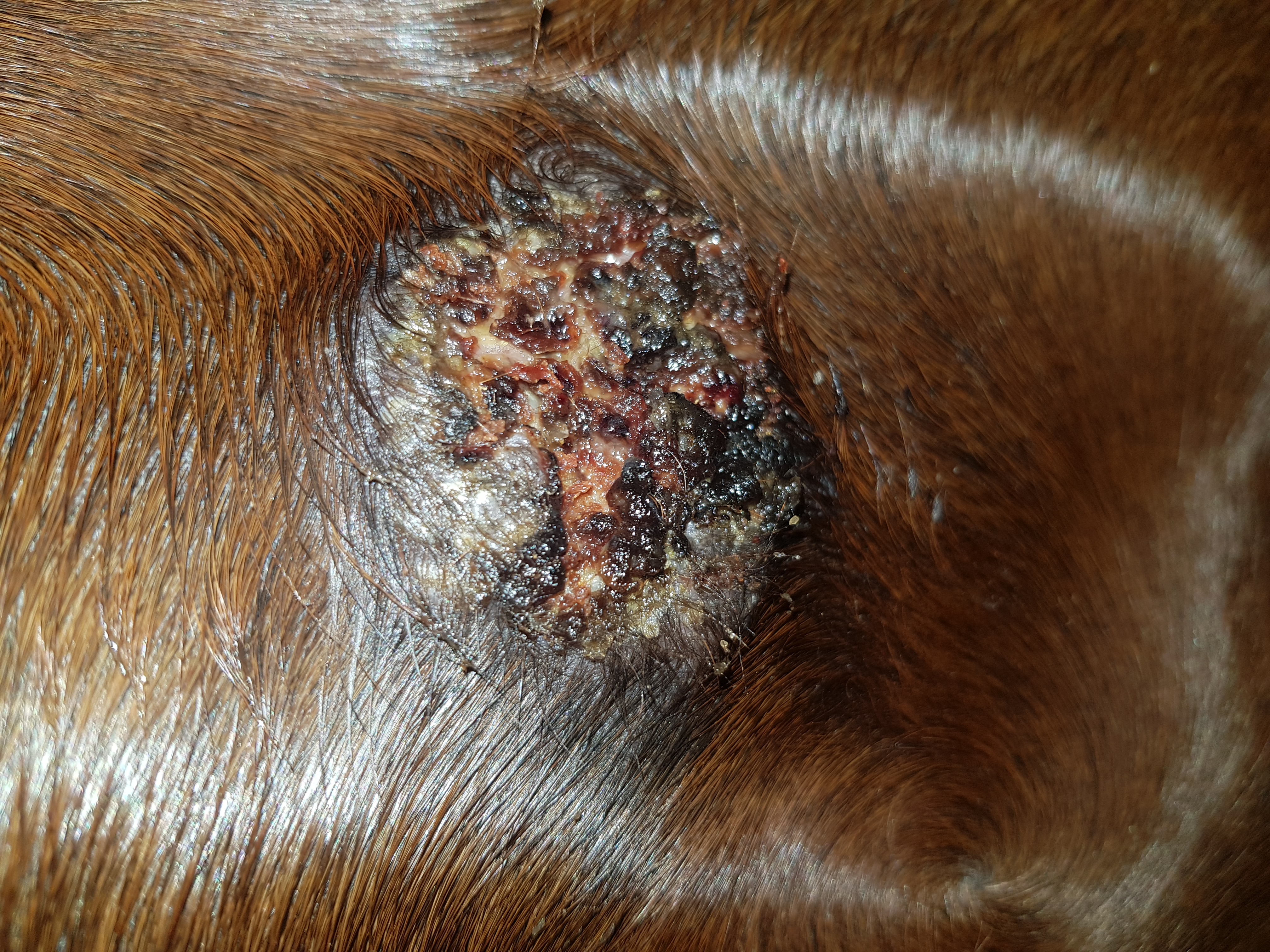 Es ist übrigens gar nicht nötig, die wunde Sarkoidfläche mit etwas Anderem als der CompX zu behandeln. Die hat entzündungshemmende Bestandteile und krustet in dem Stadium normalerweise quasi sofort.