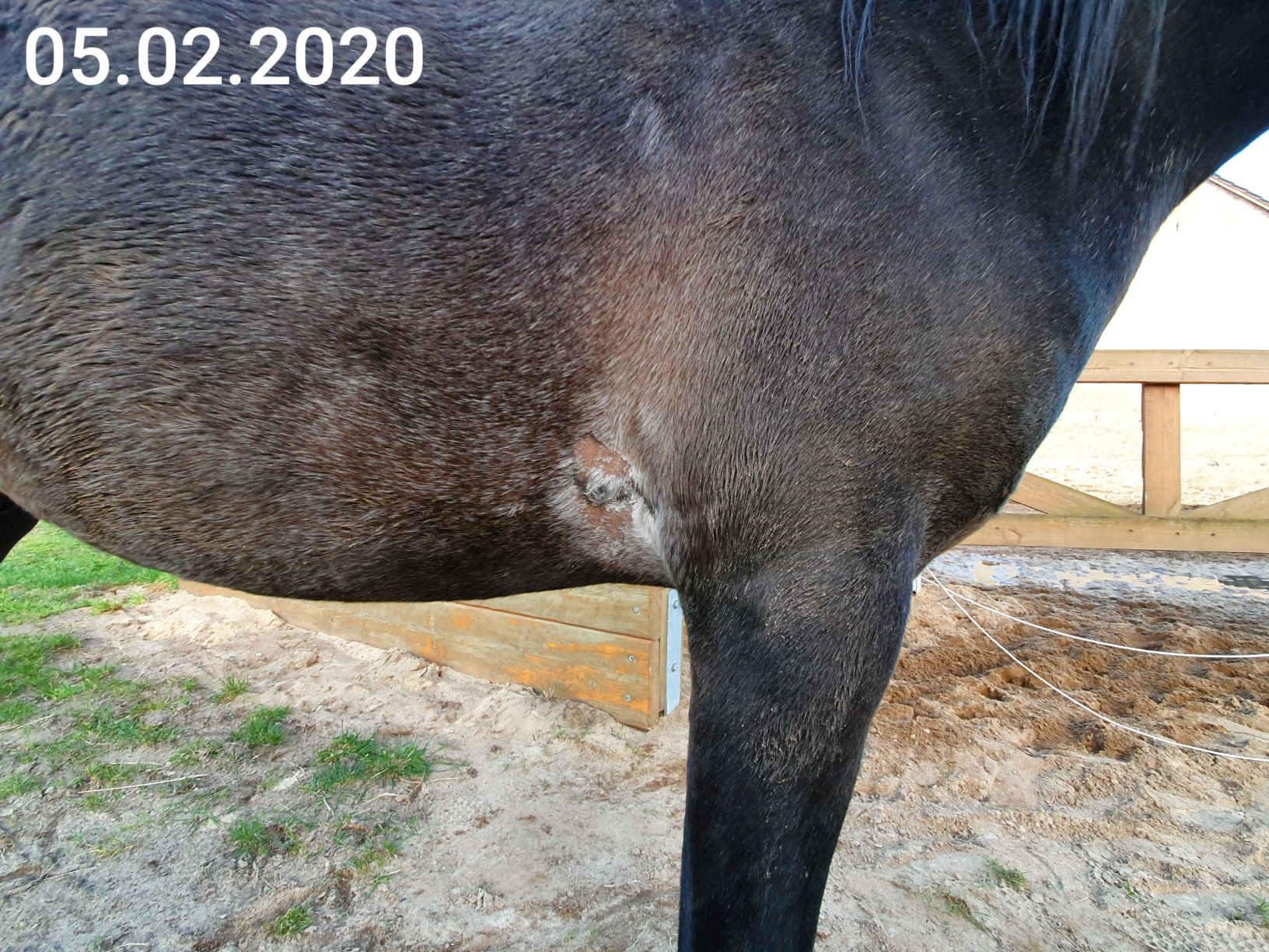 Im August 2019 liess ich das von meiner Tierärztin anschauen, welche mir sehr schnell sagte, dass das ein kleines equines Sarkoid sei, welches von Kühen (wir haben viele Kühe hier im Umfeld) in viraler Form über Zeckenbisse oder Stechinsekten übertragen werde. Ich solle mir aber keine Sorgen machen, es gäbe eine Salbe die wahre Wunder bei so etwas vollbringt und kein gesundes Gewebe angreift. So bekam ich Dermequin (xxTerra) mit der üblichen Anweisung 4 Tage lang dünn schmieren dann 4 Tage Pause u.s.w.
