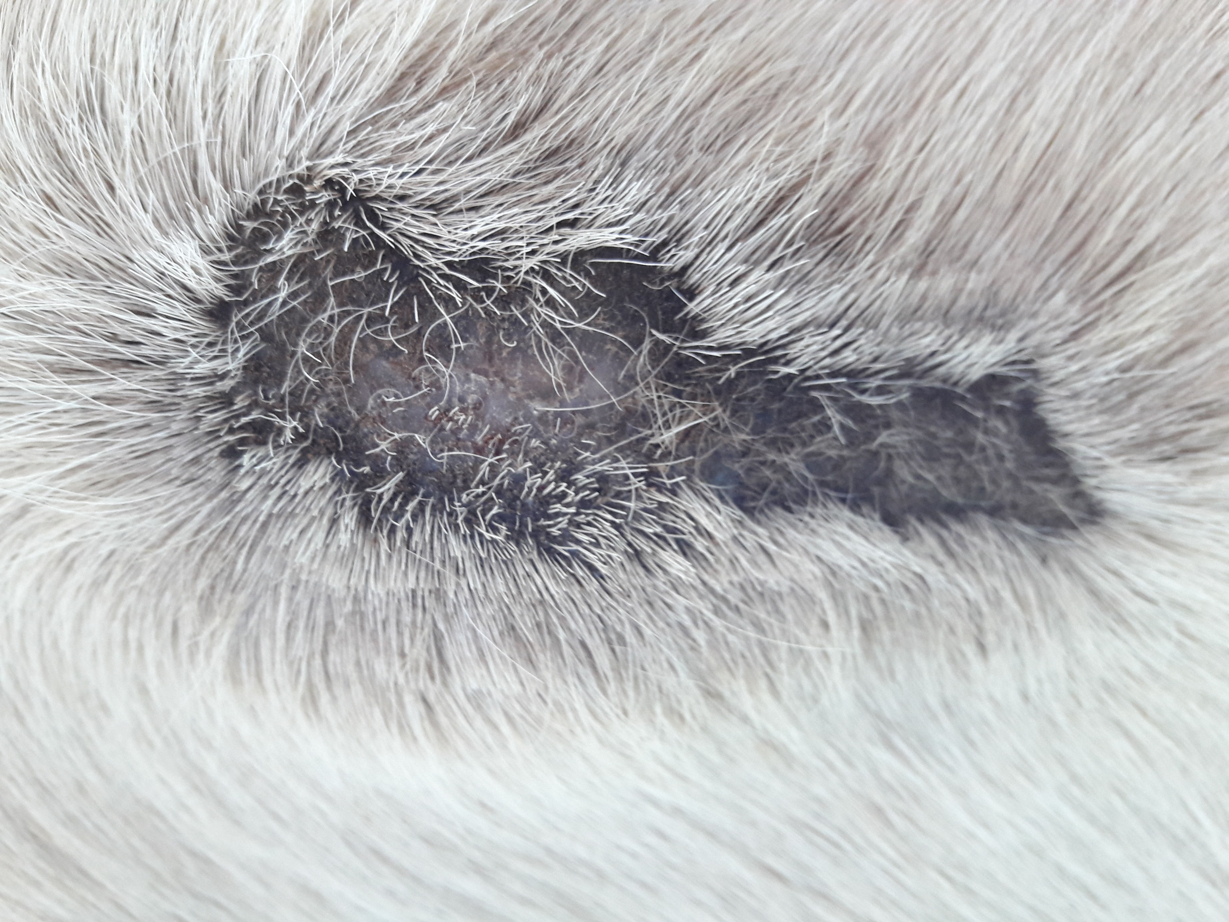 Ich habe euch neue Bilder gemacht. Wir haben unverändert Ruhe - schnell auf Holz klopfen! Ich pflege noch ein bisschen die Narben. Fell wird wohl nicht mehr waschen, aber damit kann ich leben. Die Viecher greifen die Narbe an der Bauchnaht an. Daher sieht sie etwas gereizt aus.