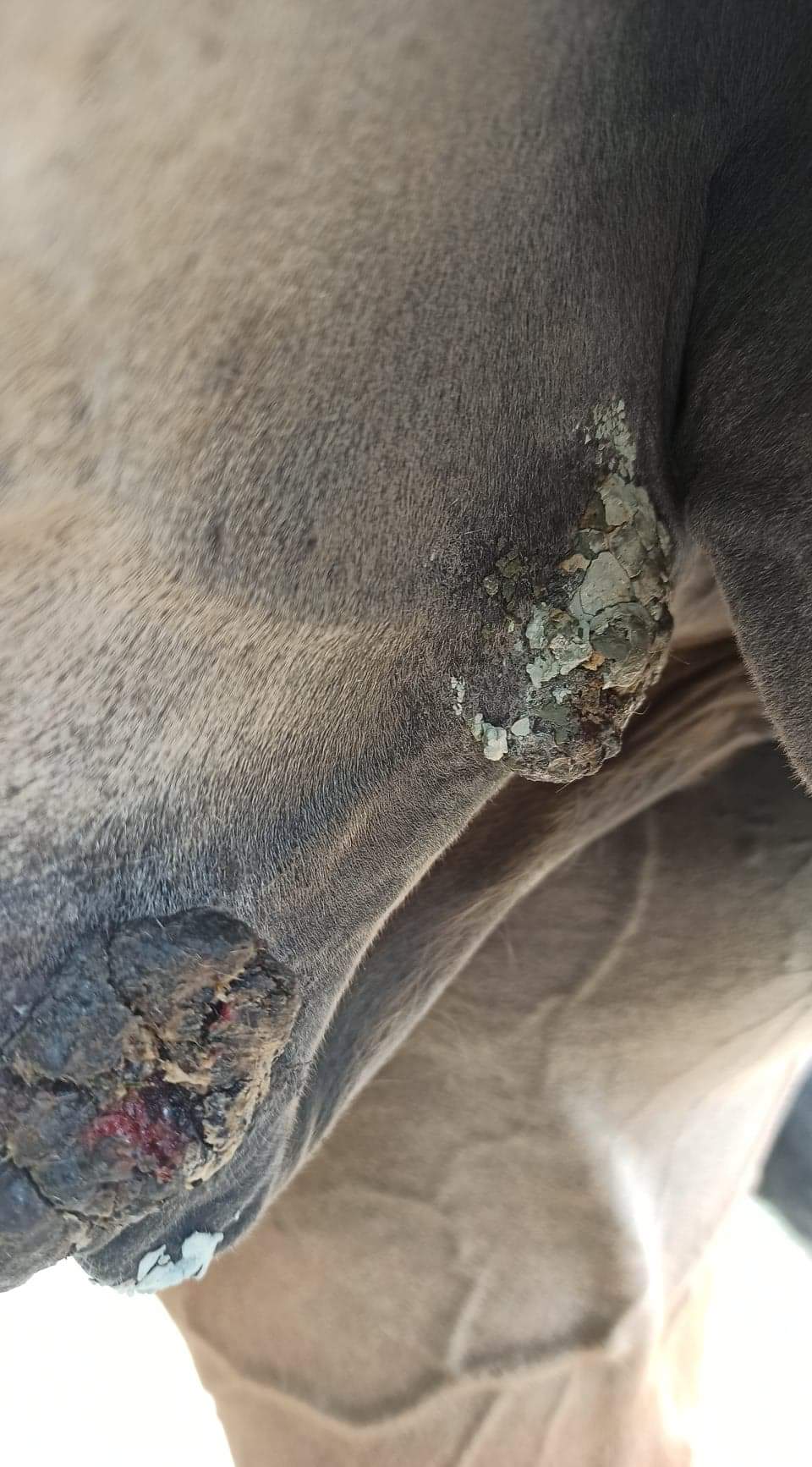 Besiegt sind sie aber definitiv noch nicht. Es sieht nicht so aus als ob es gesunde Haut wäre unter den Krusten.