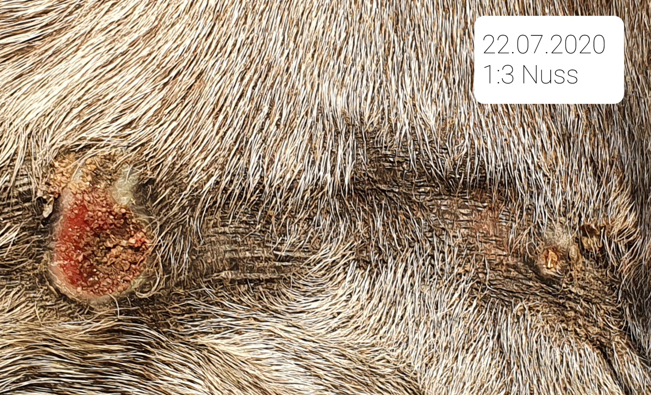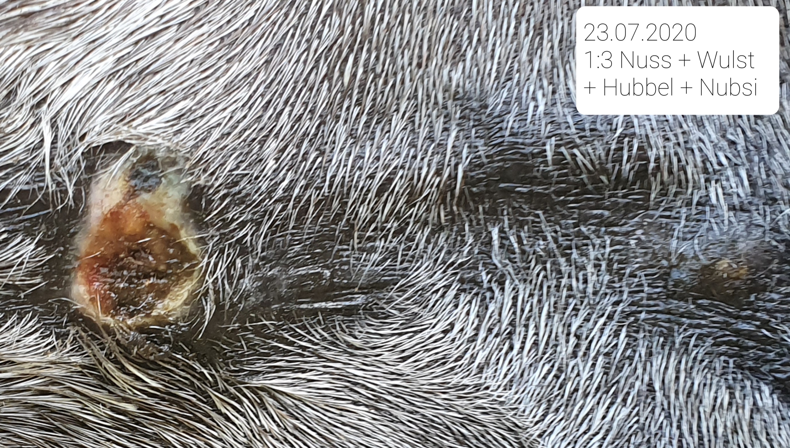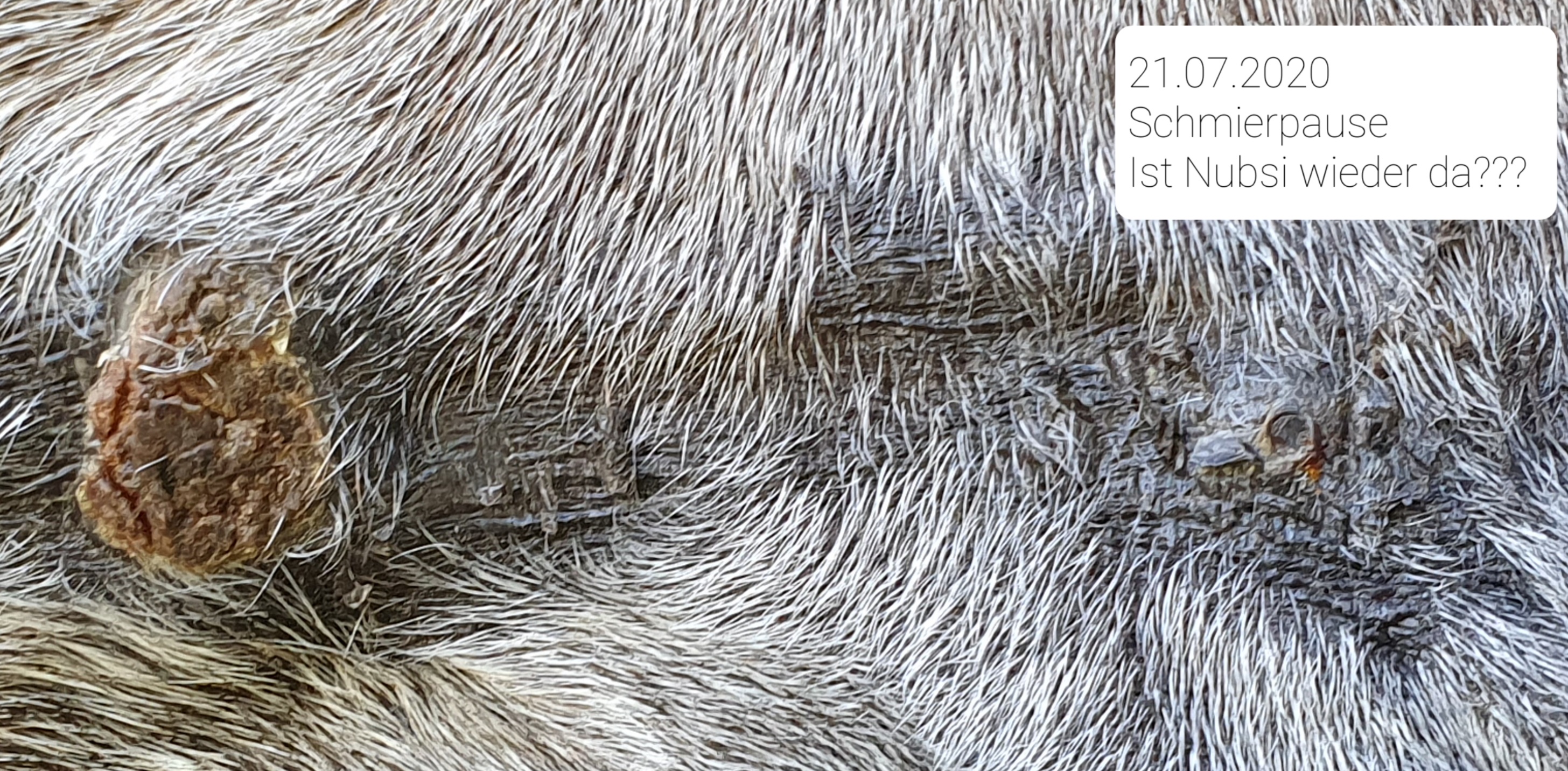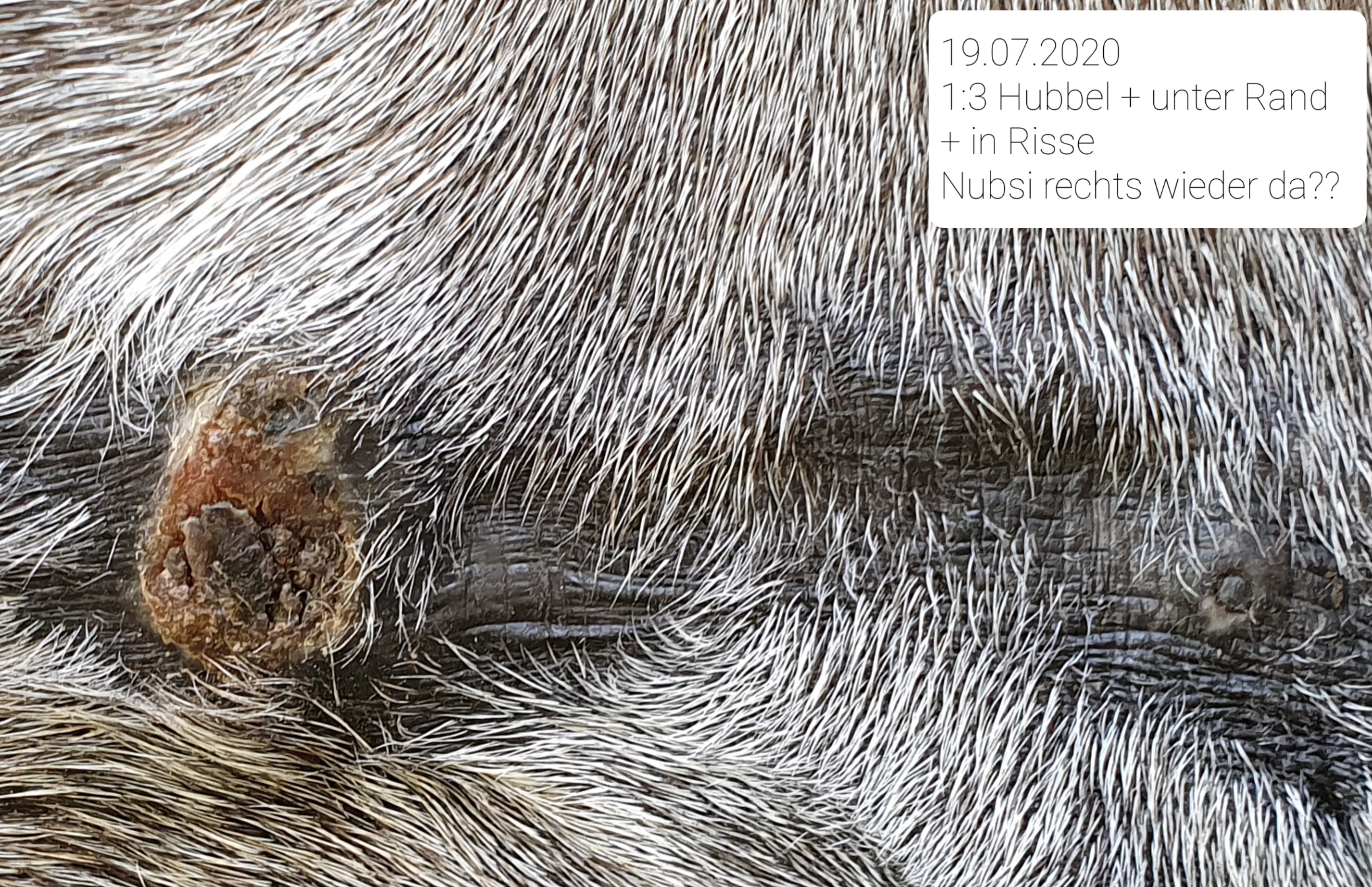 Weiterhin scheine ich mich nachdem dort die letzten Monate Ruhe und weiche Haut vorhanden war zu früh über den Sieg von dem Nubsi rechts neben der Nuss gefreut zu haben. Ich hoffe, es kommt nur vom Gegenkontakt mit der Salbe. Aber es sieht so aus und fühlt sich auch so an, als wenn Nubsi wieder kommt... :cry:
