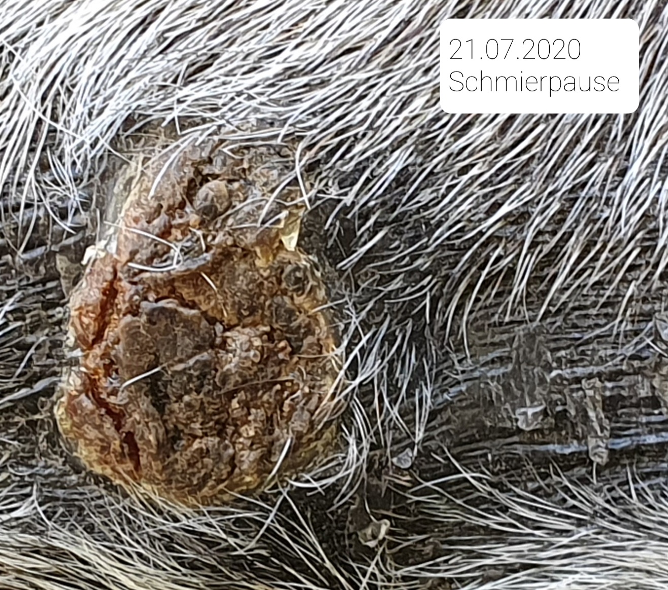 Ich habe artig alle 2-3 Tage Schmierpausen eingelegt und sonst mit 1:3 geschmiert. Die Stelle um Nuss heilt von aussen nach innen wunschgemäß immer weiter ab. ABER... unten unter der Nuss und dem neuen Hubbel und dem Wulst kann ich inzwischen eine Verhärtung umgreifen in Form und Größe einer dicken Kirsche. Ich traue dem Frieden nicht und bin besorgt, dass es oberflächlich abheilt und sich innen drin "einkapselt. Gibt es so etwas?