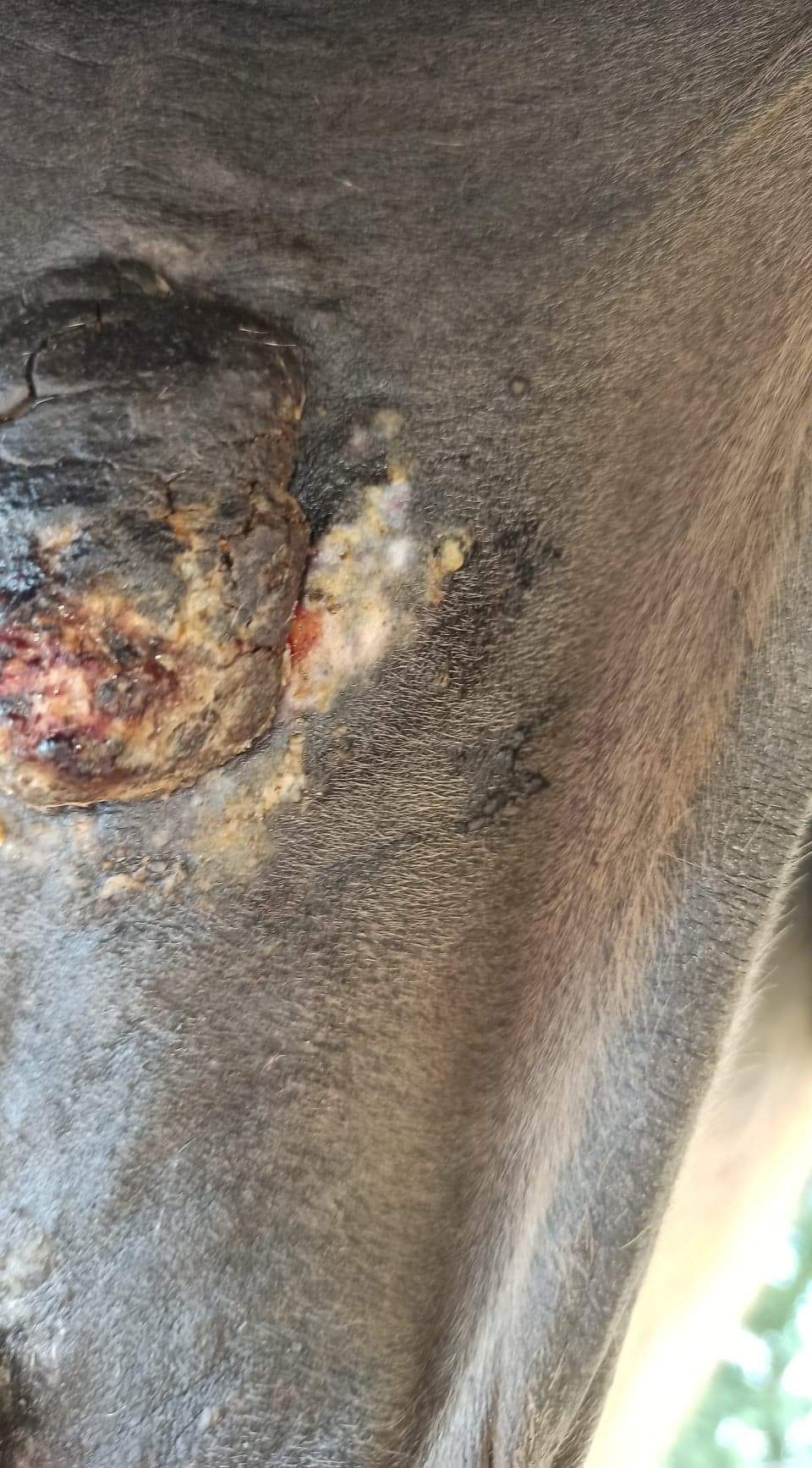 ich werte es als sehr gutes Zeichen, dass Dein Pferd empfindlich wird. Es zeigt, dass die CompX endlich am Sarkoid angekommen ist. Das sieht man auch daran, dass es an jedem Sarkoid blutige oder eitrig gelbe Stellen gibt.
