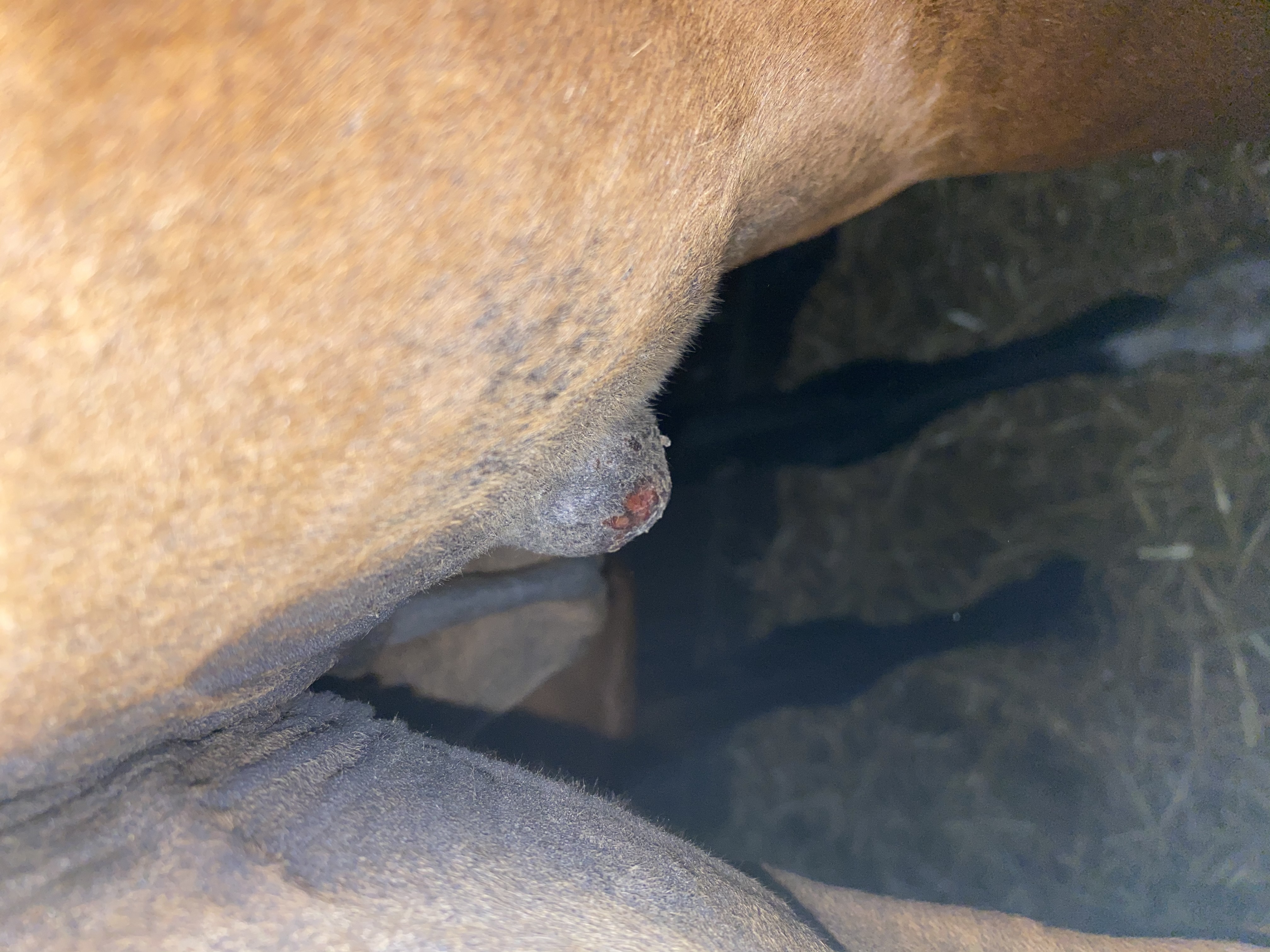 So, schmiere jetzt zwei Tage unverdünnt und dann zwei Tage 1:1 verdünnt. Es könnte sein, dass sich ein bisschen was tut. Habe mal neue Bilder gemacht. Auf jedenfall sind einzelne Stellen da, wo sich die Haut ablöst und es leicht rosa aussieht. Mein Pony ist immer ganz begeistert wenn ich mit dem Zeug komme *Achtung Ironie* aber ich habe Hoffnung, dass es sich langsam öffnet...