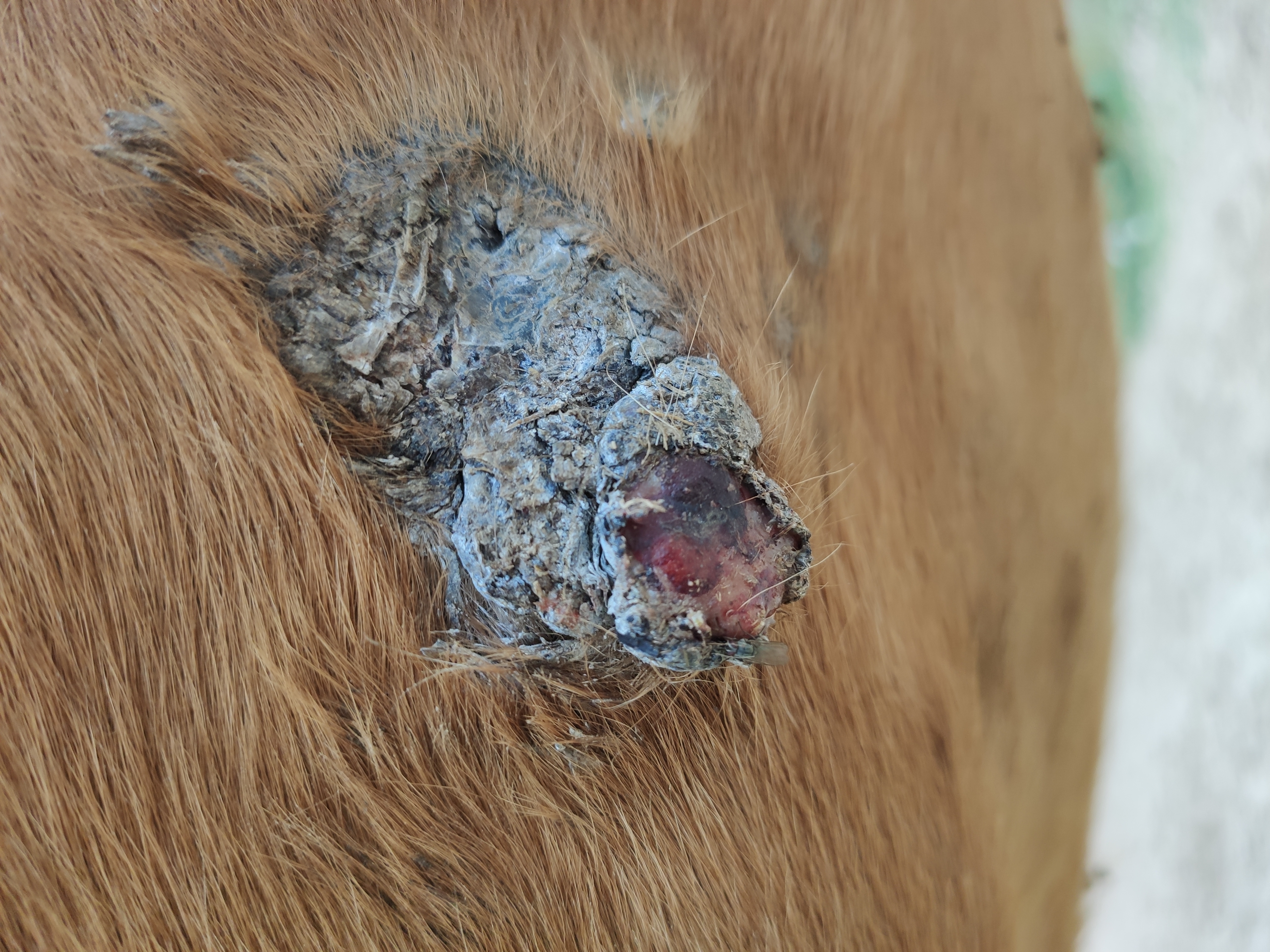 Warte nicht zu lange bis Du härtere Geschütze auffährst, das Sarkoid wächst in der Zeit munter weiter - und zumindest das am Hinterbein sieht recht aktiv aus.