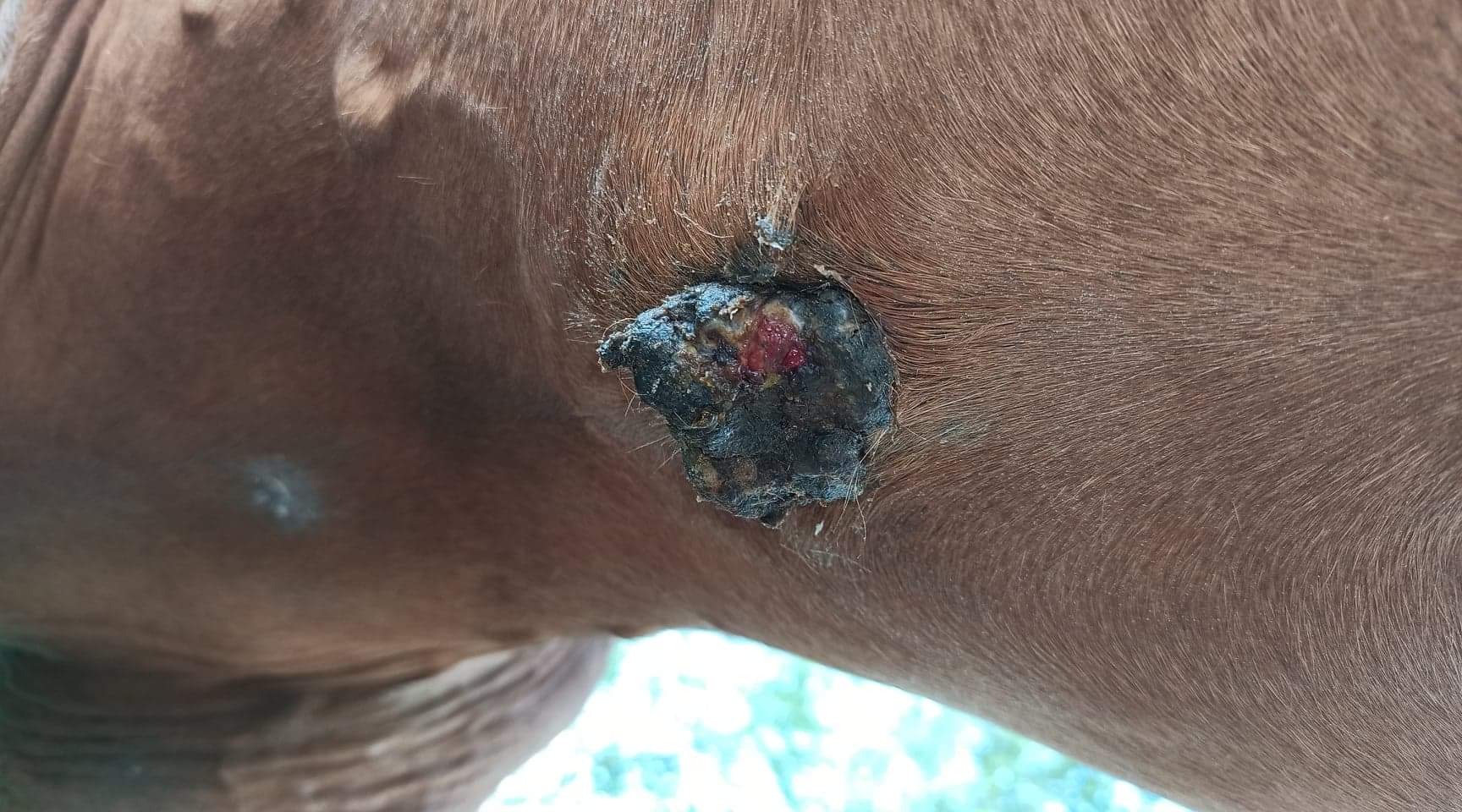 Ja, ich versuche, das Sarkoid gut an seiner Basis zu nehmen, außerdem kann man überall auf dem Haar Kruste sehen.