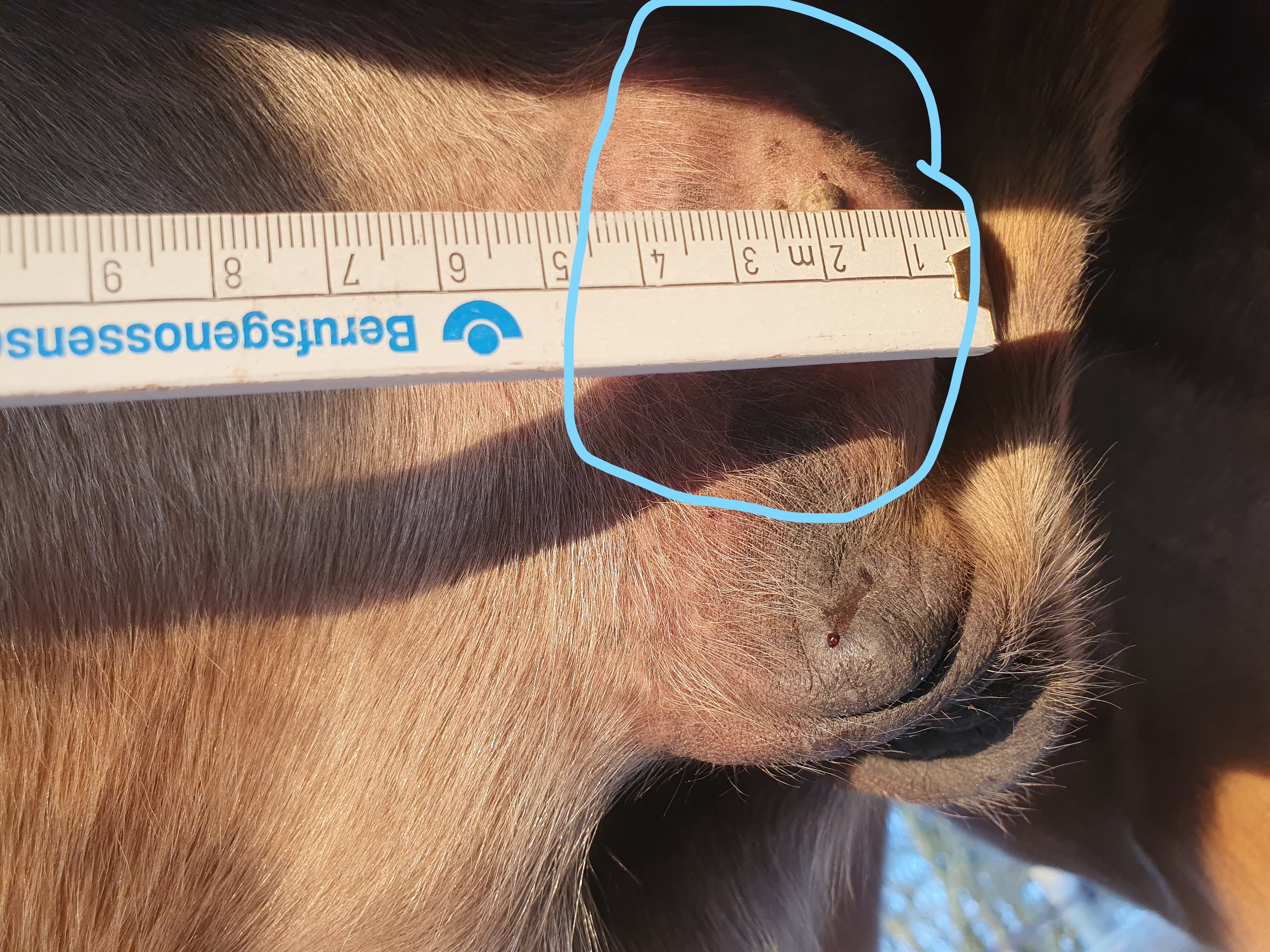 Wie beginne ich ? 1:1 ? Schmiere ich auf das Sarkoid an der linken Schlauchtasche nur auf die Warze ? Und das in der Achsel ? Das ganze große Ding dünn ? Und das am Auge erstmal weglassen ?
