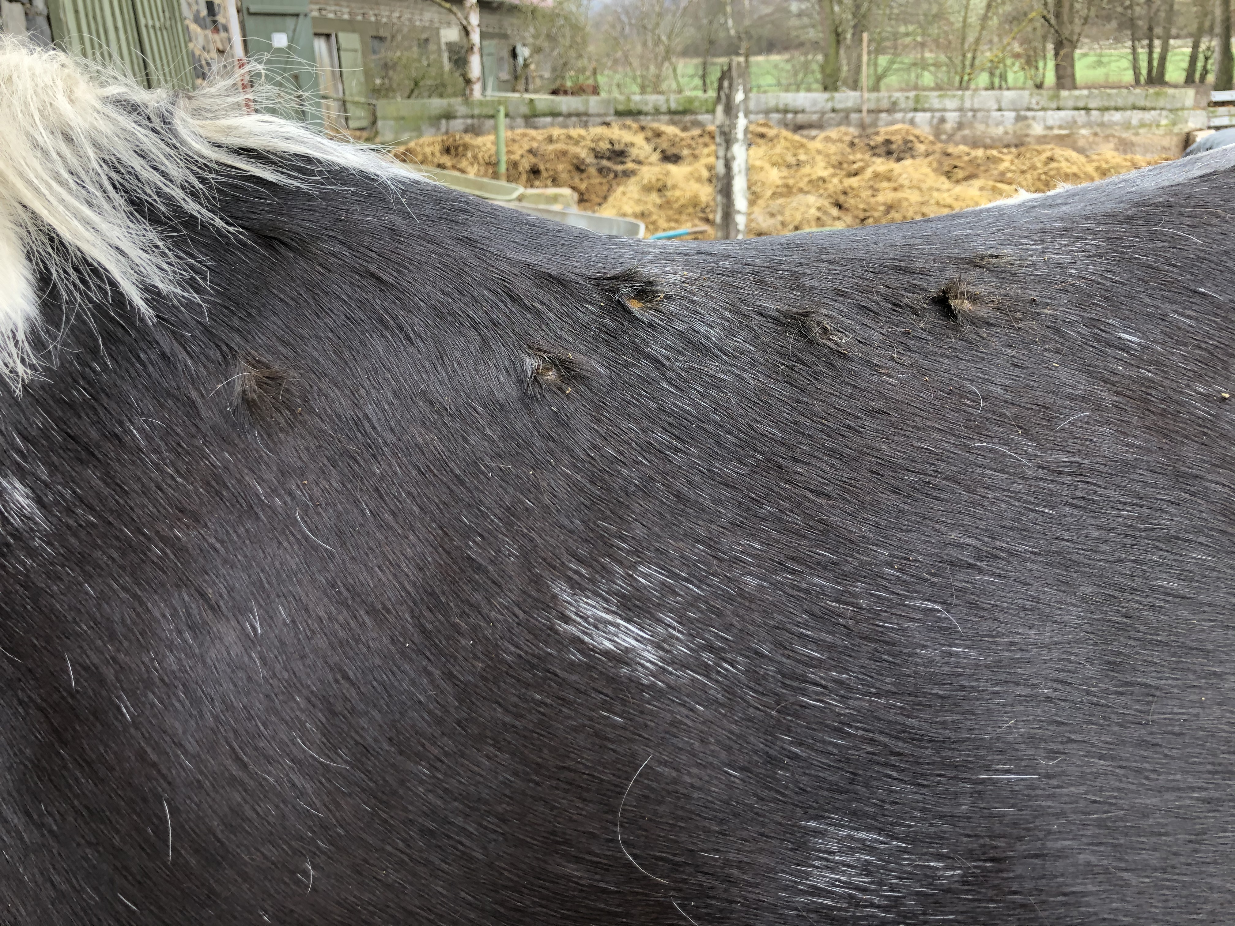 Geritten wird sie im Moment wegen einer Verletzung eh nicht, da hab ich gedacht ich probier die Knubbel loszuwerden. Ansonsten waren die Knubbel aber auch druckunempfindlich und haben nicht gestört. Achja, sie ist auch eingedeckt den Winter gewesen und mit dem Sattel haben wir immer wieder Probleme (muss ständig neu angepasst werden, weil Pony sich so verändert und Probleme mit dem Sattler).