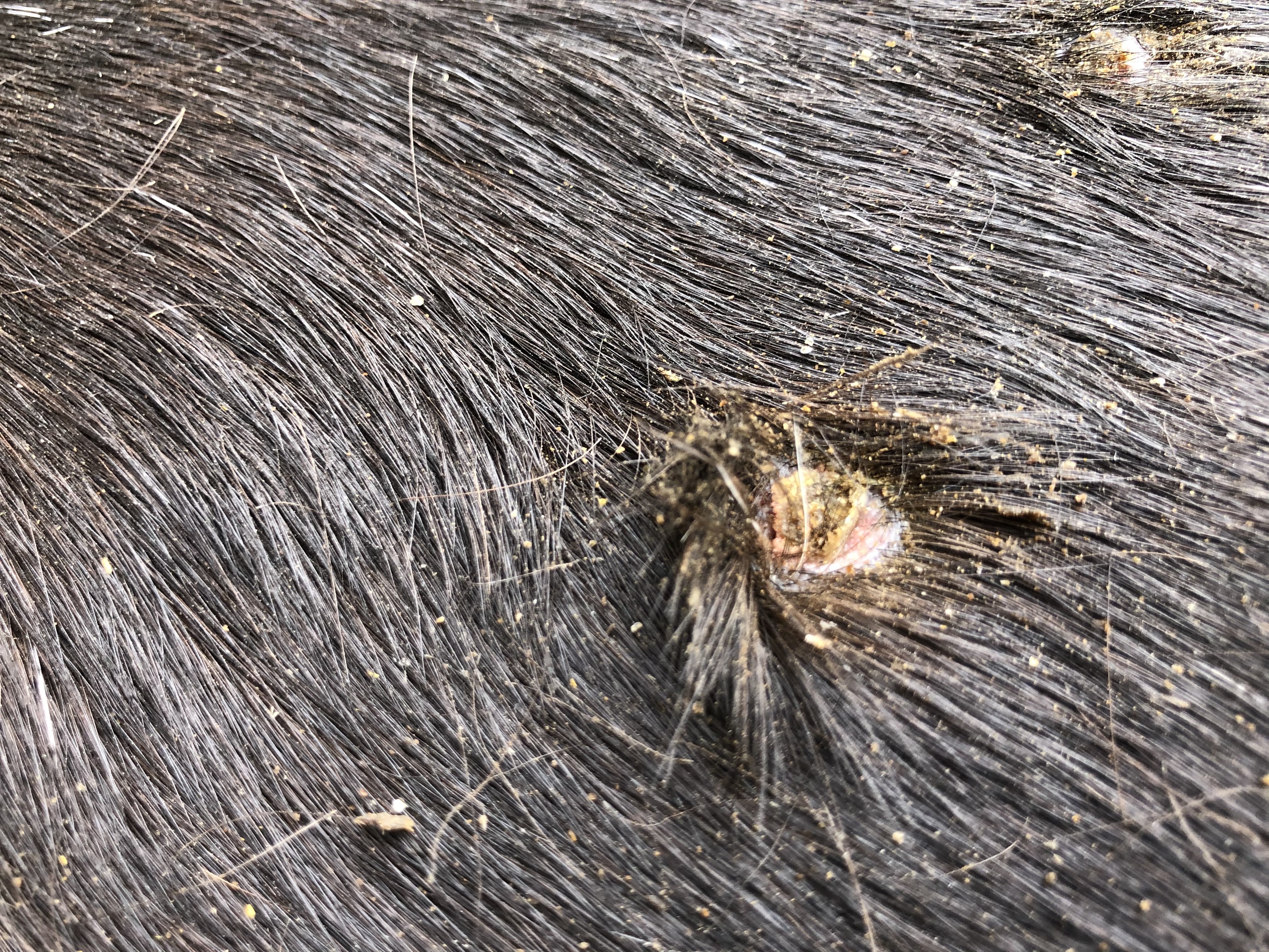 Bei dir sieht es ja wirklich so aus, als ob du Knubbel hast, die komplett mit Fell bedeckt sind und dann ziehst du mit dem Fellbüschel eine Kruste mit ab.