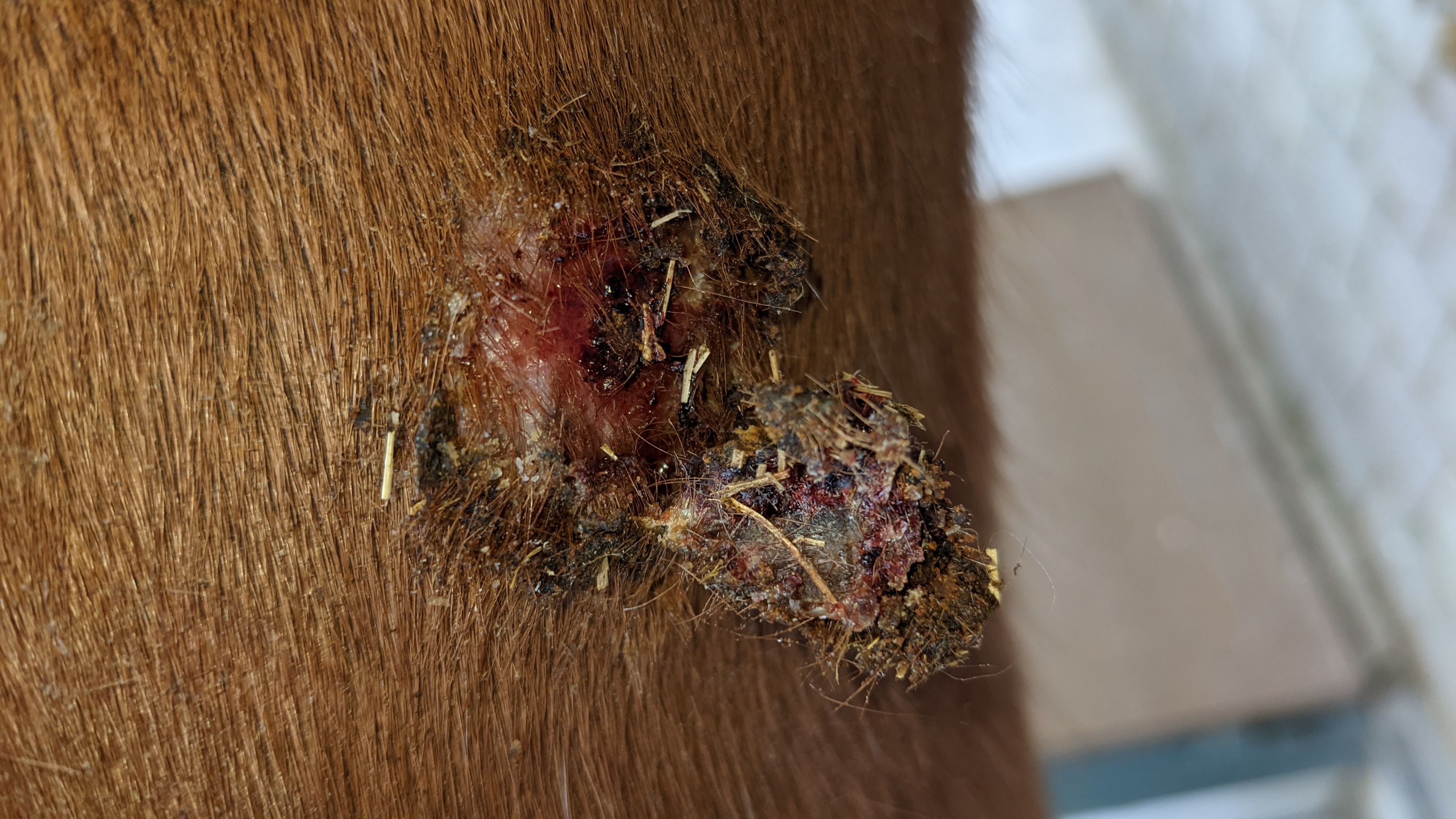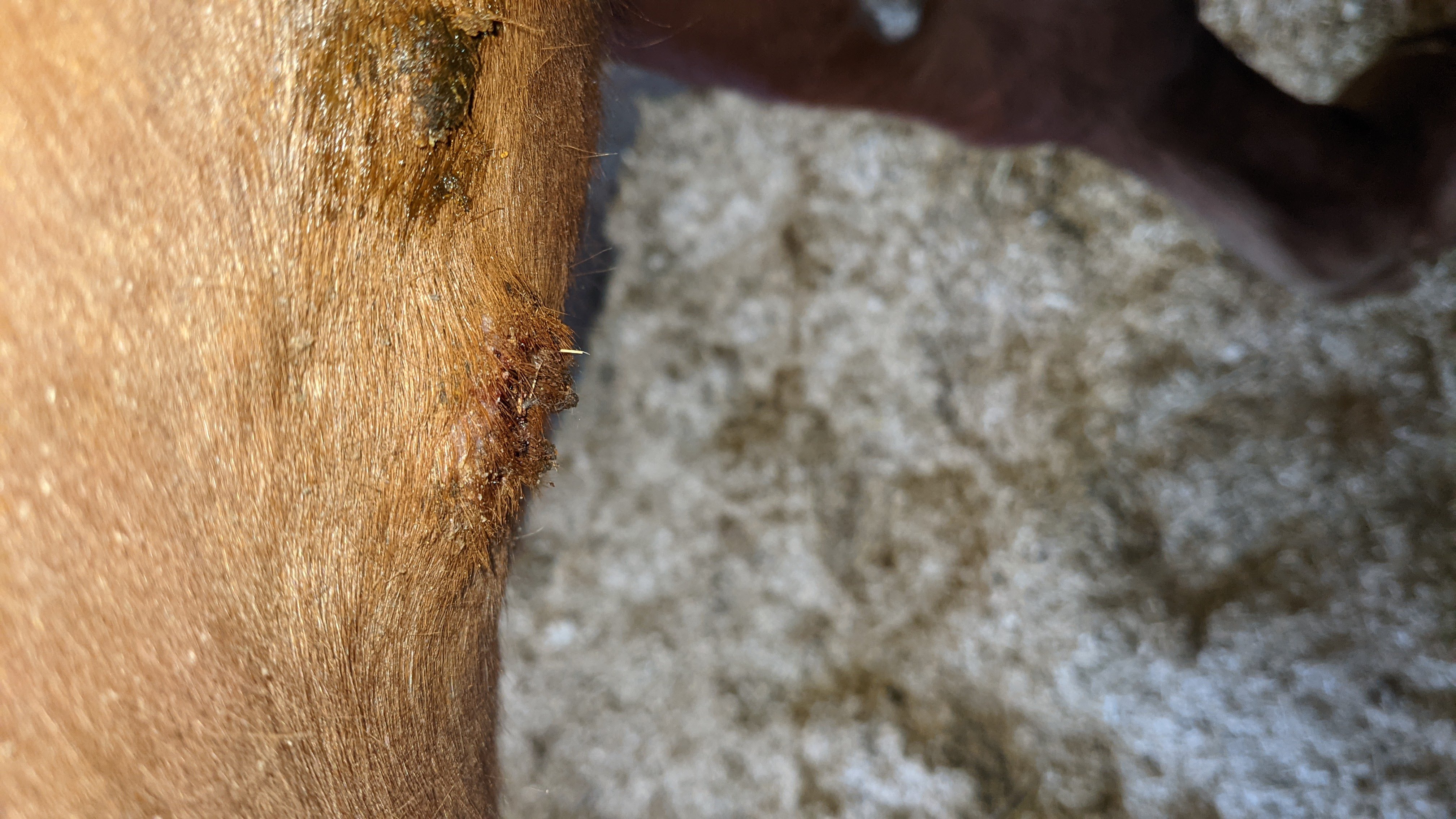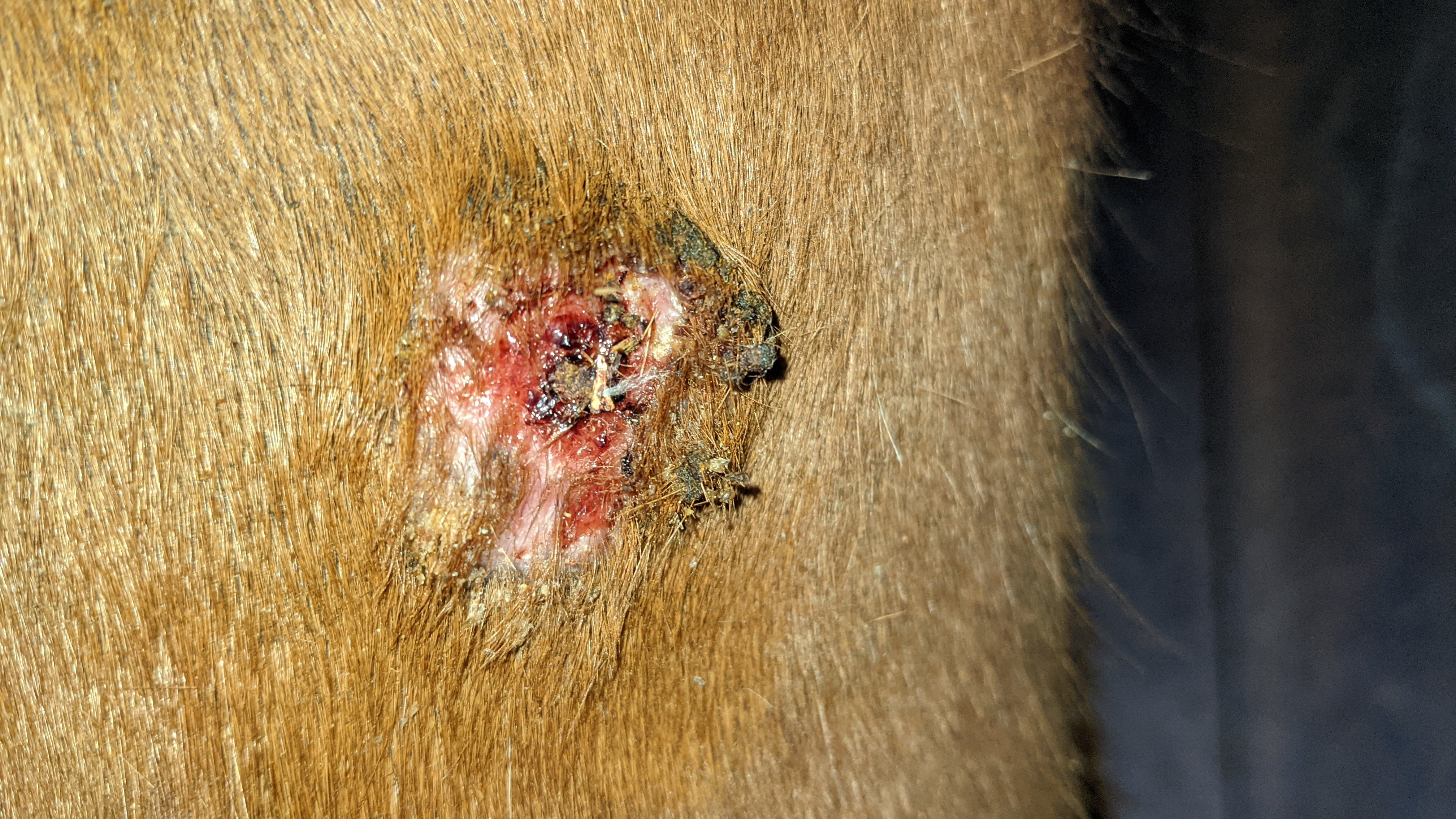 Krustenbildung durch das schmieren ist nicht zu erkenne, der kleine Knubbelchen ist kaum zu spüren und fast unter dem Fell verschwunden.