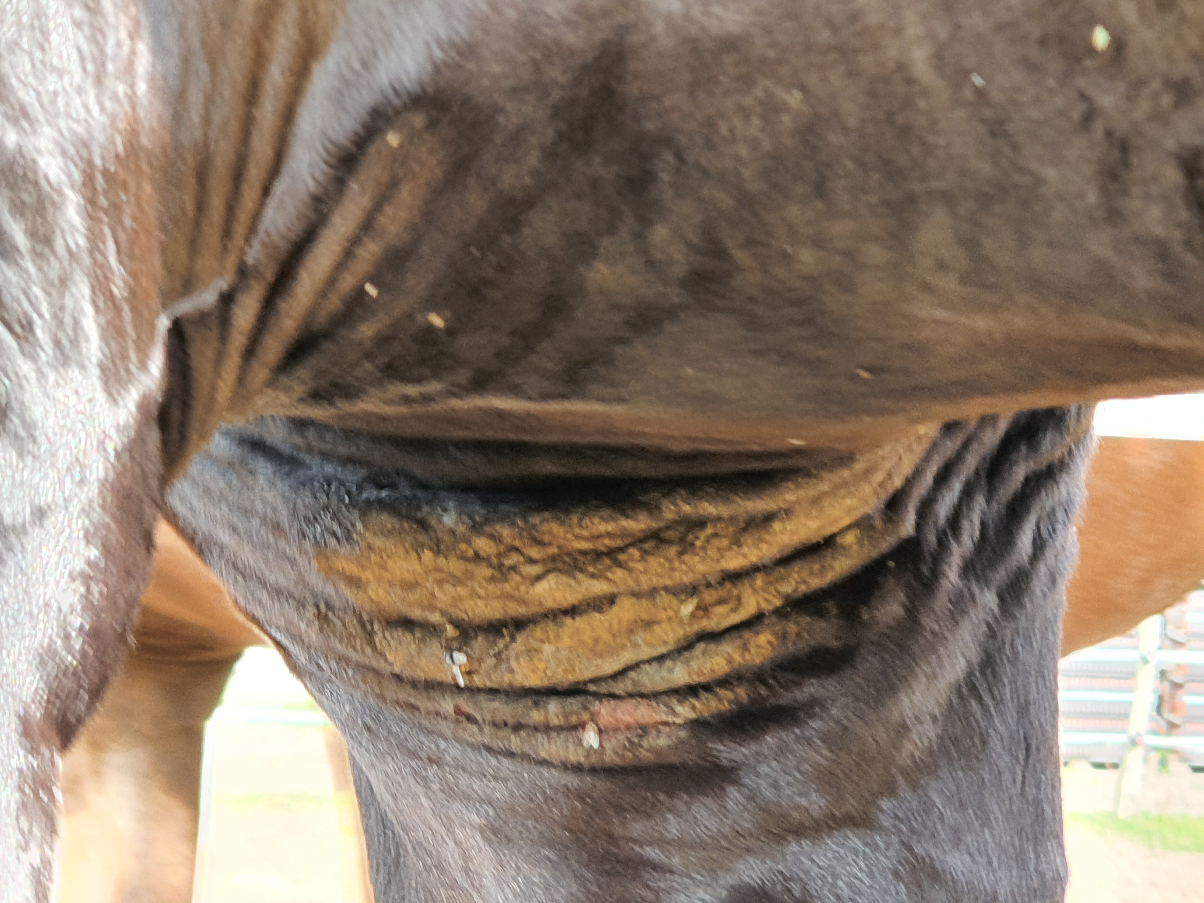 Moin ihr lieben. Seit 2 Tagen hat sich an der gleichen Stelle wieder eine Art Tumor gebildet. Meine 3 jährige Stute hatte letzten Herbst zwischen den Vorderbeinen rechts innen ein Tumor. Habe wahrscheinlich zu früh aufgehört mit Salben. Das macht mir echt Sorge. Habe erst beobachtet, dass eine kleine Stelle schorfig war, dann wurde sie immer größer und es hat sich ein Sack gebildet. Sieht genauso aus wie letztes Jahr. Und es ist heiß. Letztes Jahr fiel ein Knubbel raus, bis jetzt merke ich noch nichts von einem Knoten oder Knubbel. Anbei Bilder. LG Sandra