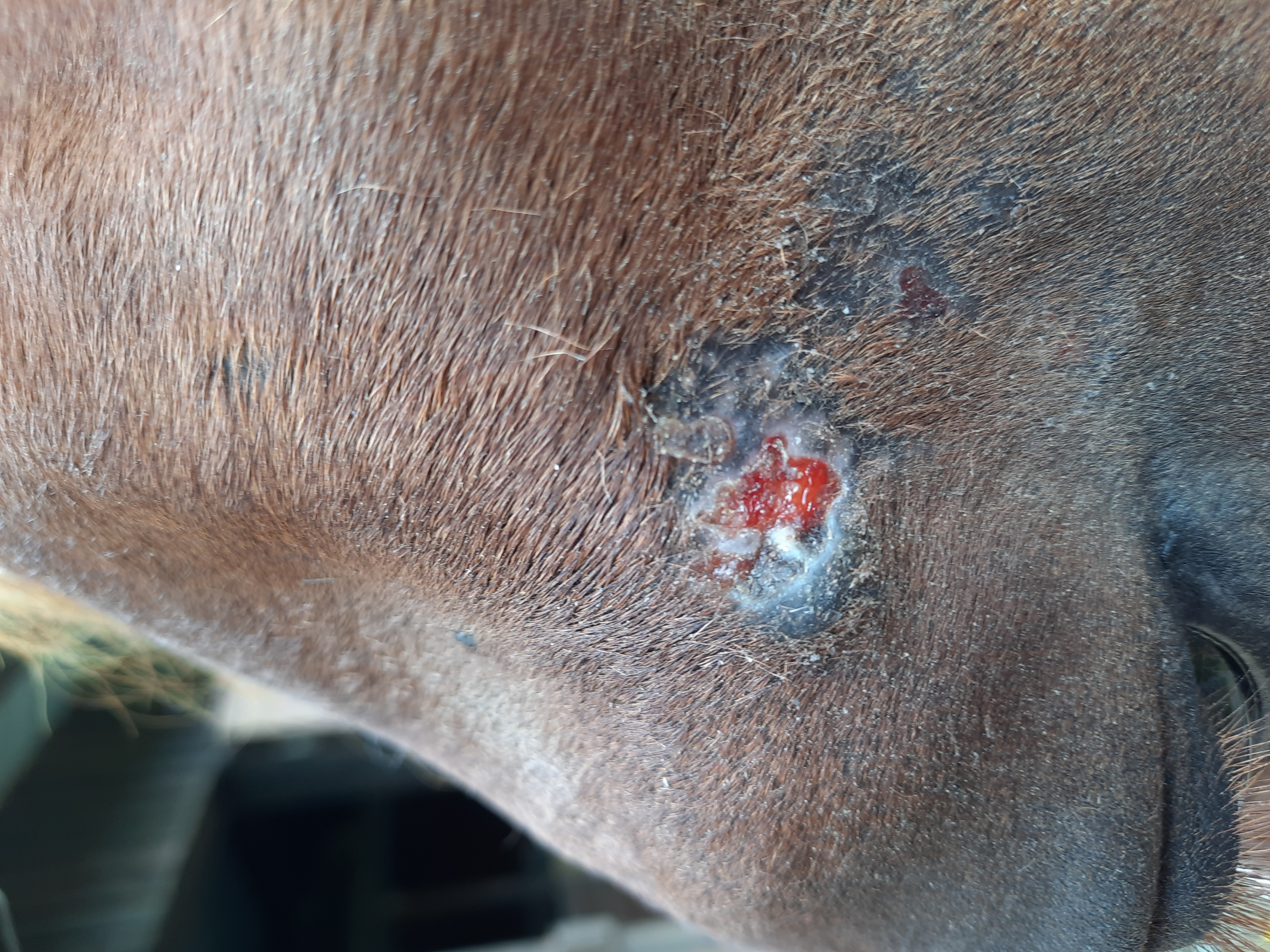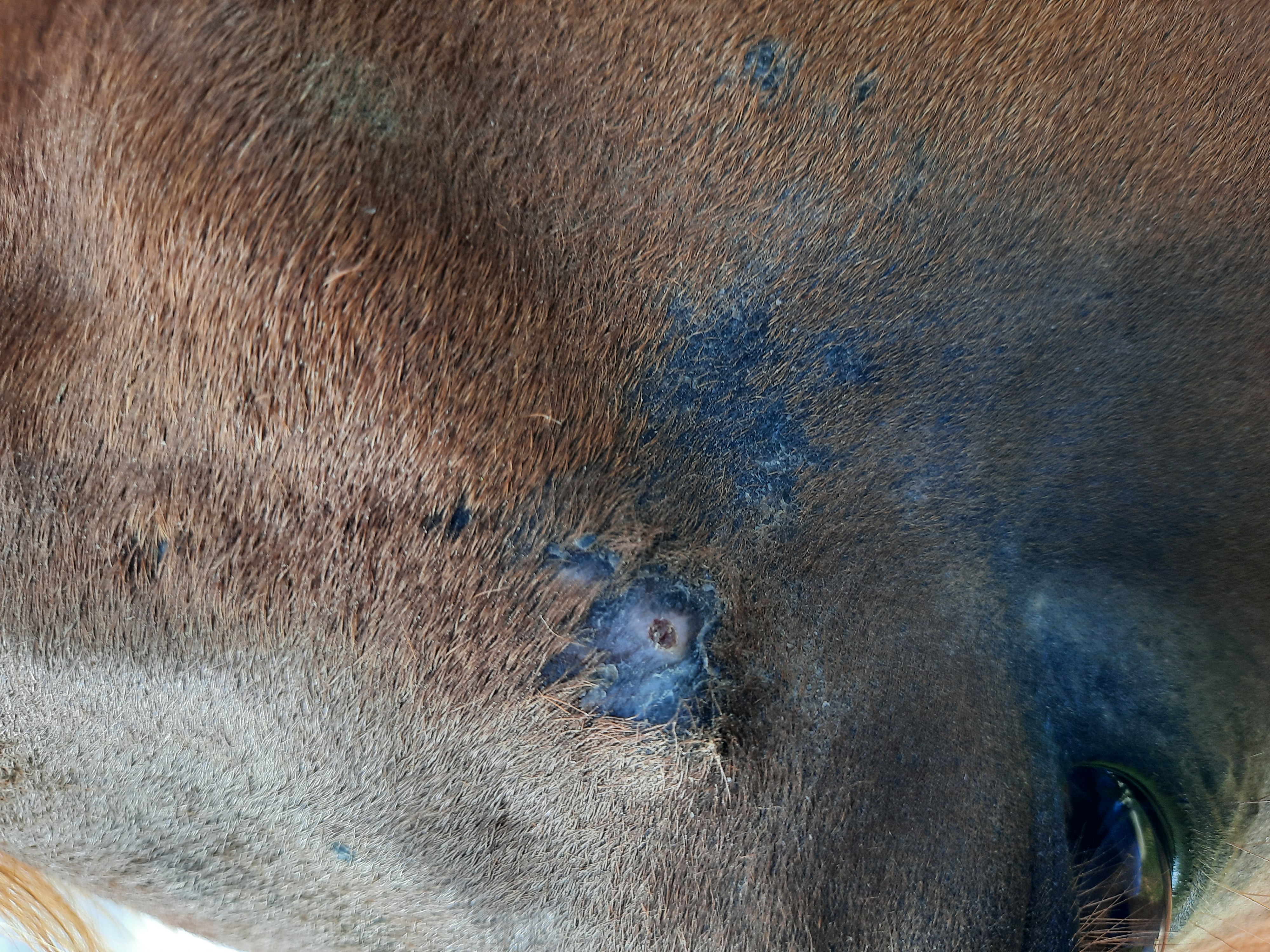 9jährige Stute mit Sarkoid am Hinterbein