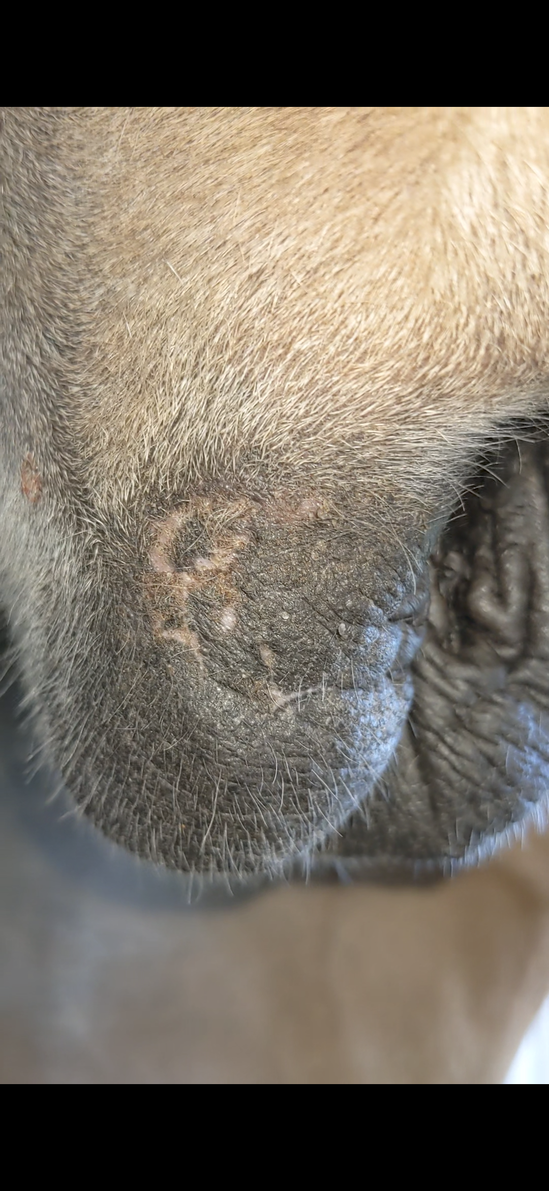 Nr. 1 ist heute etwas blutiger gewesen, Pony war aber sehr entspannt heute und nicht so zickig. Ich konnte es gut ansehen, fotografieren und einschmieren. Die untere Kante heilt weiter gut.