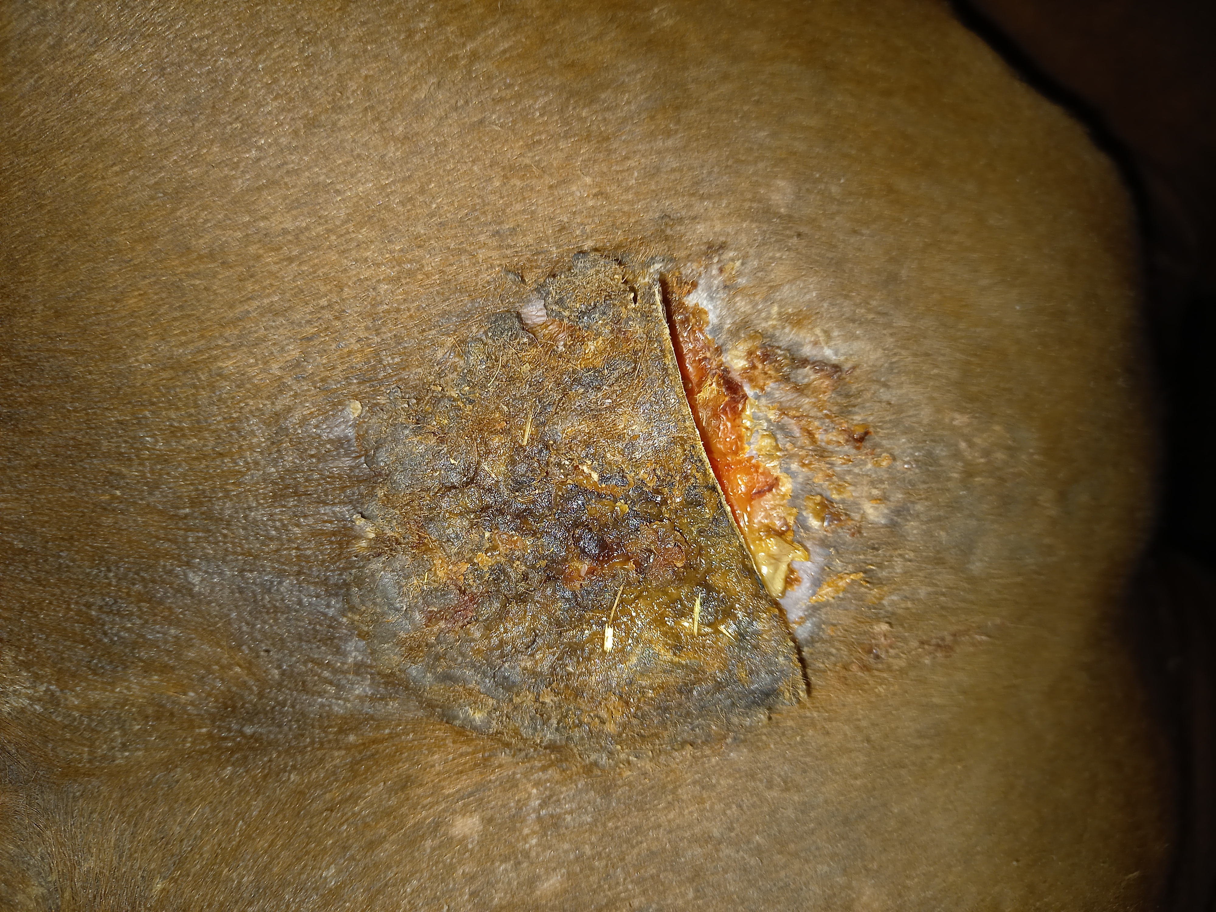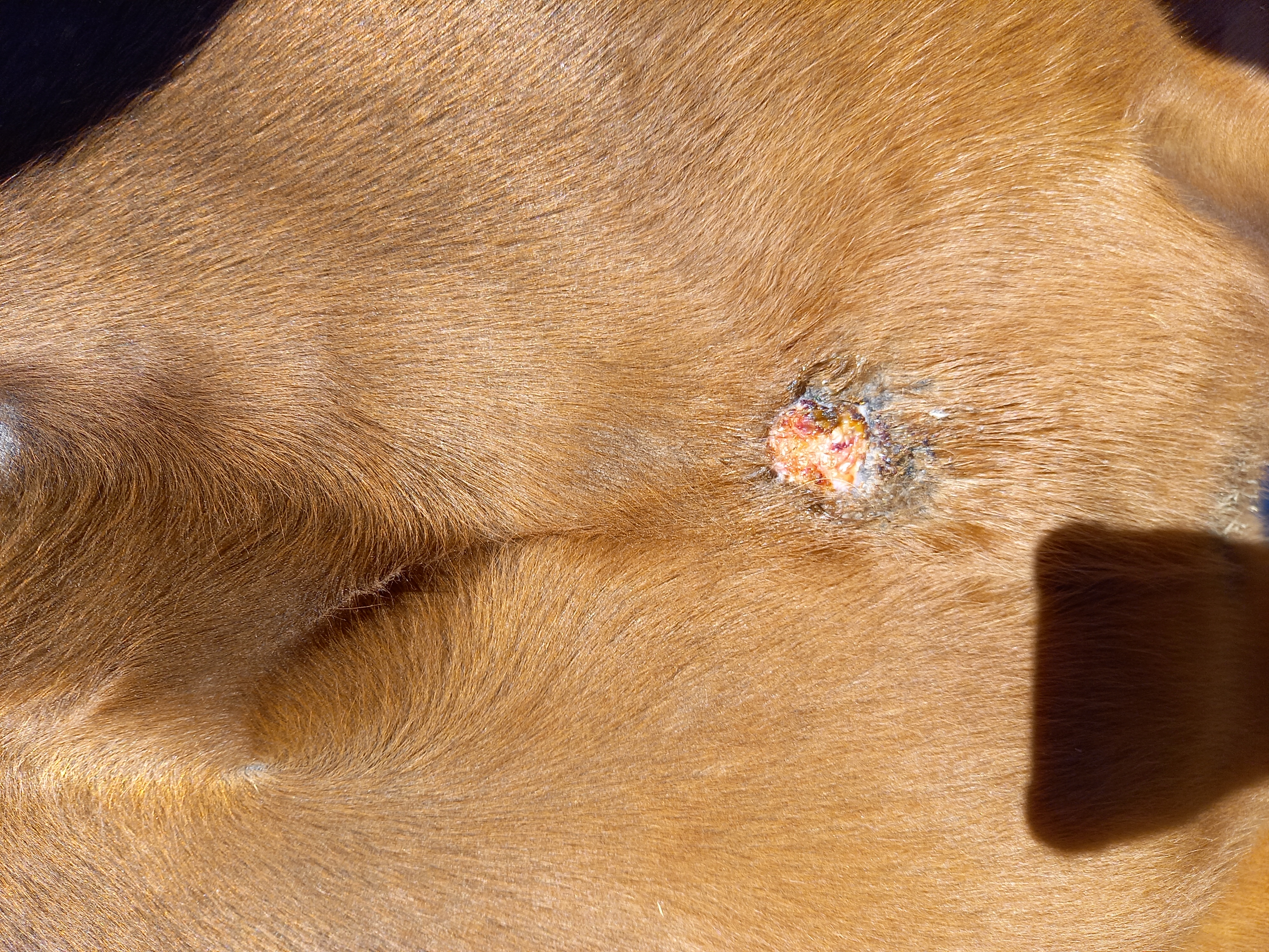 Sarkoid Schulter hat sich nur minimal verkleinert und es bildet sich immer wieder eine kruste und es supt gelbes Sekret aus der Wunde. Hier liegt wohl immernoch einiges im argen. Dranbleiben und schmieren