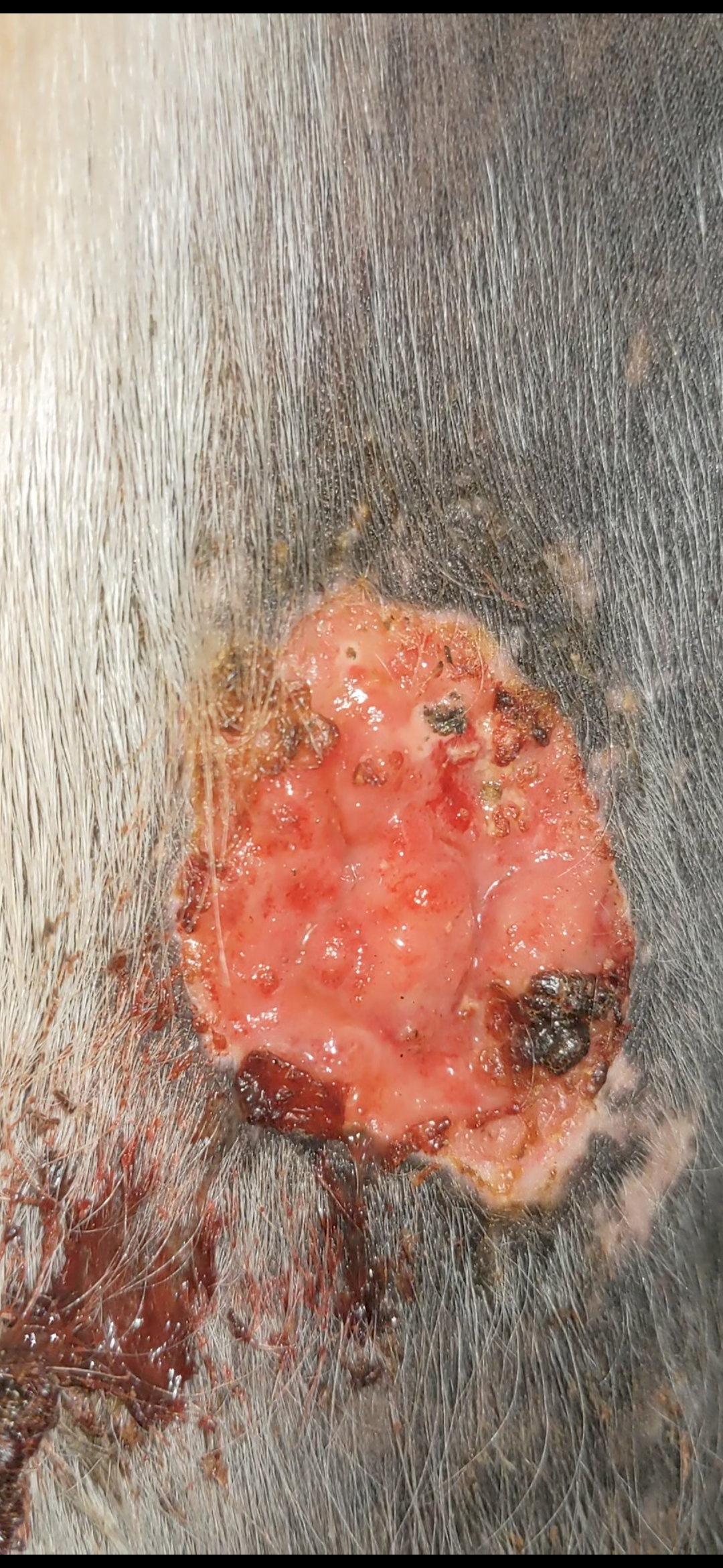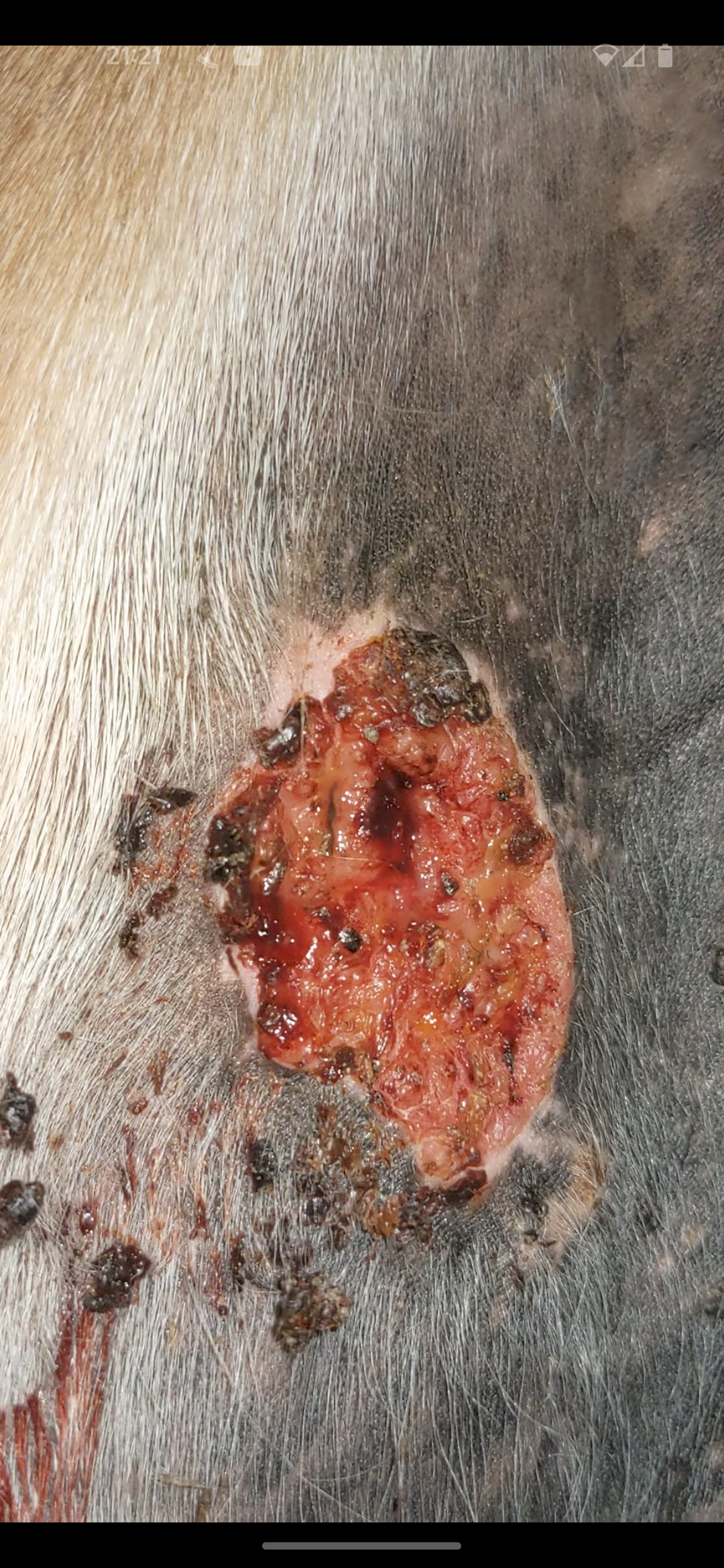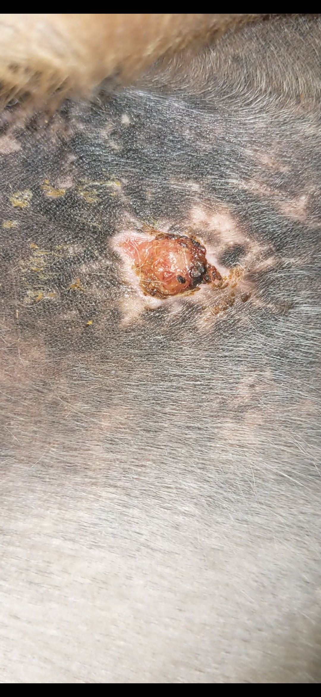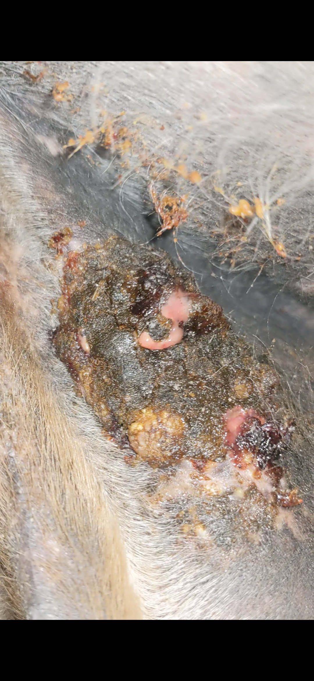 Nummer 2 hat jetzt erstmal nur Heilsalbe bekommen. Wird langsam besser. Hat etwas mittig noch minimal Kruste