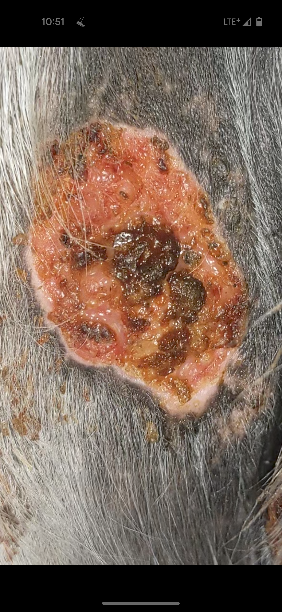 Ja genau Nummer 4 hat unter der Kruste noch was, was auch sifft, zudem am Rand gegenüber diesen hellen Gewebehubbel der nicht Krusten möchte. Ich Versuche da immer nur diese beiden Stellen mit 1:1 zu erwischen und den Rest wenn nur sehr stark verdünnt