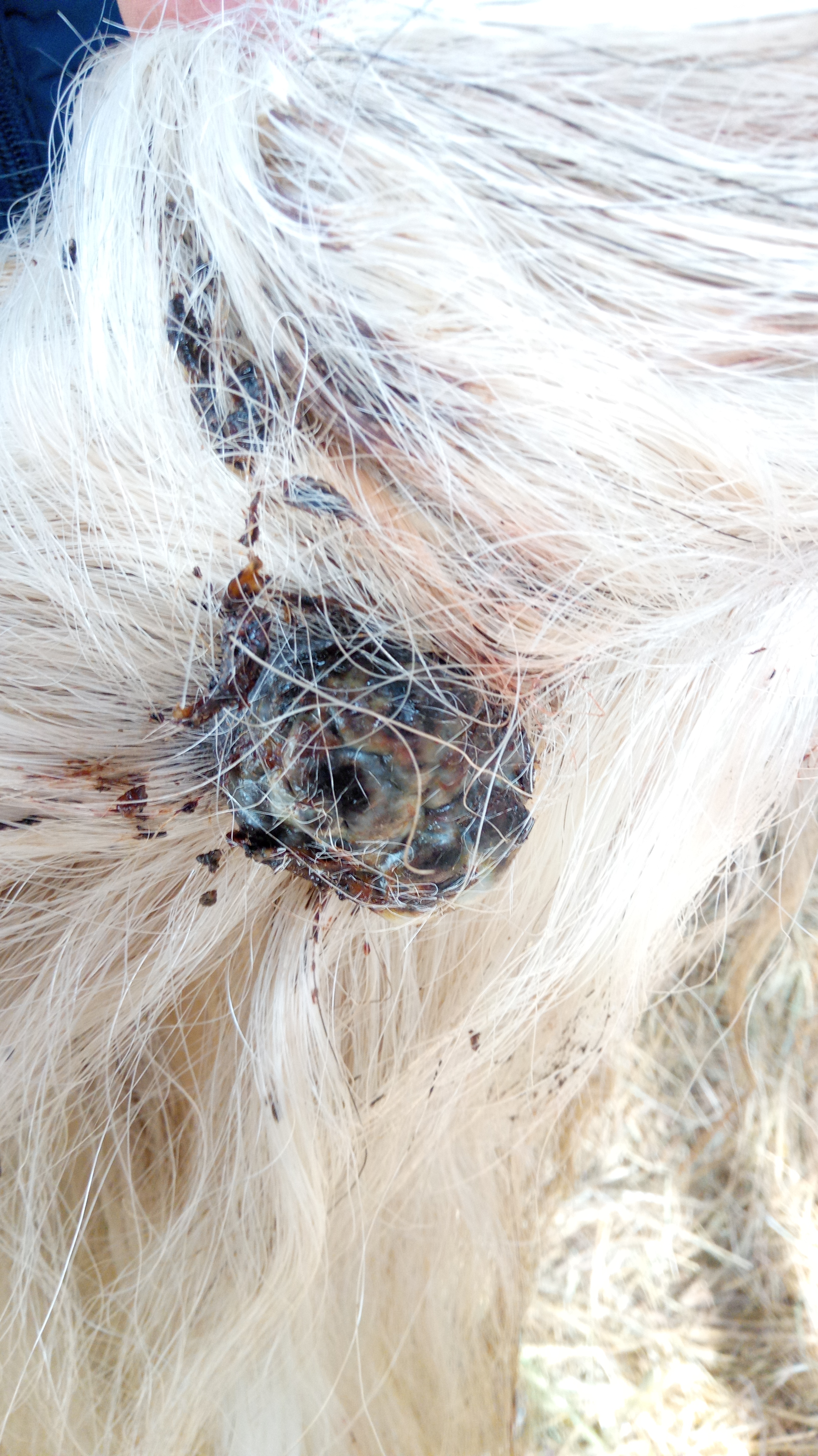 Leider sind zwei ihrer Gnubbel im letzten Jahr formlich explodiert. Da sie leider unter der Schweifrübe sitzen, reiben sie mit zunehmender Größe immer mehr am Po. Bis letztes Jahr die Popacke von der rauen Oberfläche des Knubbels (Sind Melanome nicht glatt?) aufgescheuert war. Und auch der Knubbel an sich manchmal aufplatze und blutete und sifte. Die TÄ hat uns Jodseife gegeben. Wir haben den Knubbel sorgfältig von Haaren befreit und mit Jodseife gewaschen wenn er aufplatze und ansonsten mit Zinkspray eingesprüht. Darauf hin haben sich grobe schwarze (Hornhaut?) Krümmel gelöst, Der Knubbel wurde wieder 'glatter' der Winter kam, wir haben viel überlegt Aciclovir Salbe in Betracht gezogen (Idee von TÄ) aber aufgrund der Kosten wieder verworfen. Überlegt es doch mal mit der Salbe hier aus dem Forum zu versuchen(CompX). Ich hatte jedoch bedenken, das es mit der Haut am Popo reagiert, da es ja IMMER auf dem Popo drückt. Der Winter kam, im Winter keine Probleme gehabt.