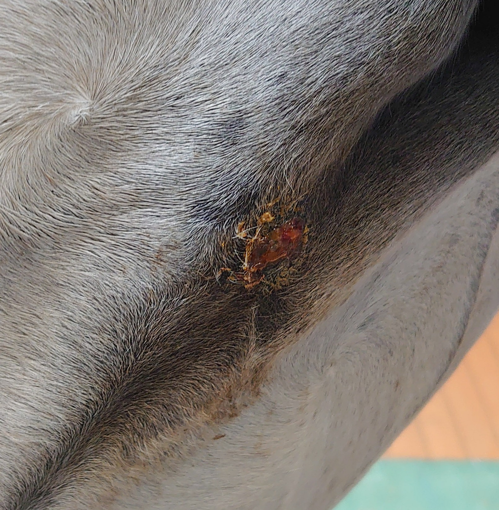 Dafür haben wir jetzt leider ein offenes Sarkoid weiter hinten an der Bauchnaht, ganz in der Nähe der Schlauchtasche!!