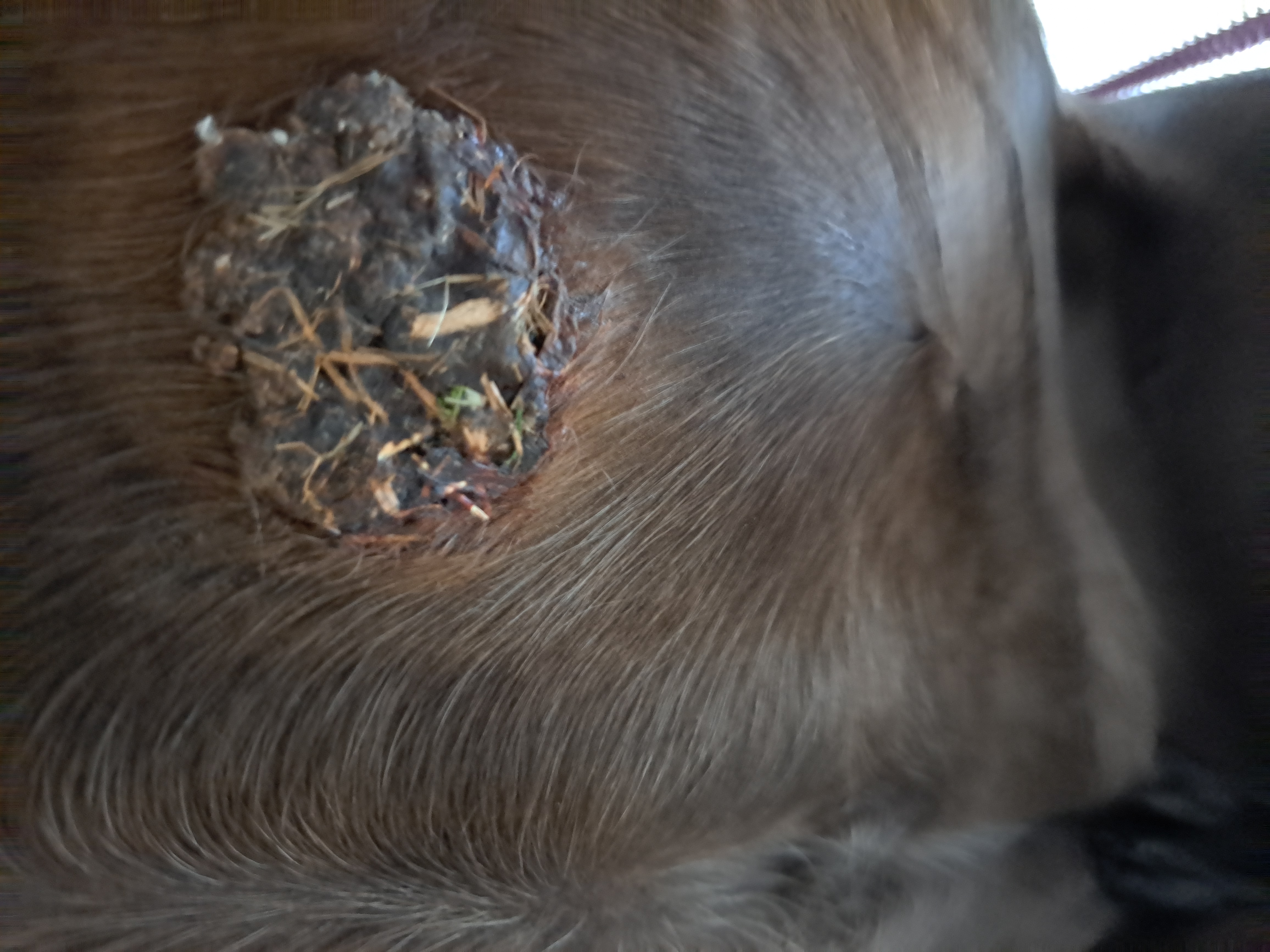 Wenn es sich komplett abgelöst hat und der nächste Schmierzyklus vorbei ist, müssen wir aber genau hinschauen, wie es aussieht. Die XXT wird irgendwann zu heftig und greift gesunde Haut gleich wieder mit an. Trotzdem würde ich jetzt vorher noch einen Zyklus schmieren, damit Reste, die direkt unter dem sich ablösenden Sarkoid sind, noch mit geschmiert sind.