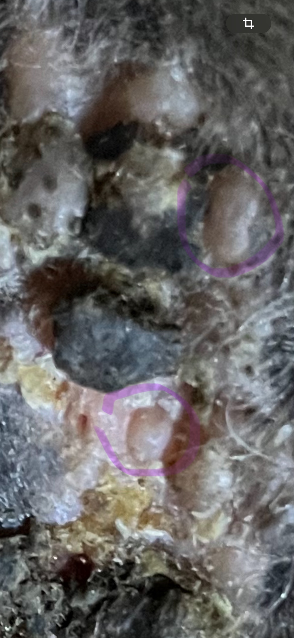 Hallo!!!! So 5. Tag Pause. Ich war heute richtig erleichtert, als ich drauf geguckt habe. Auf den Fotos ist es - auch aufgrund der Lichtverhältnisse- schwer zu erkennen. Es ist alles trocken und „blüht“ nicht mehr. Ganz viel ist ab.