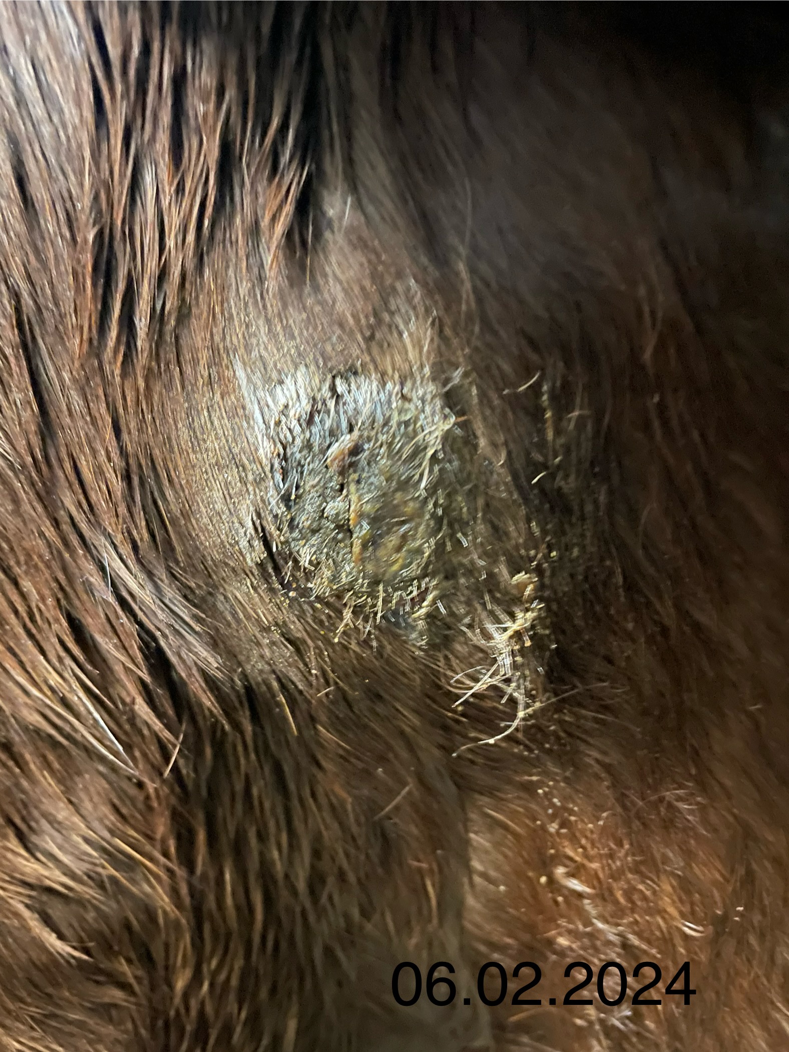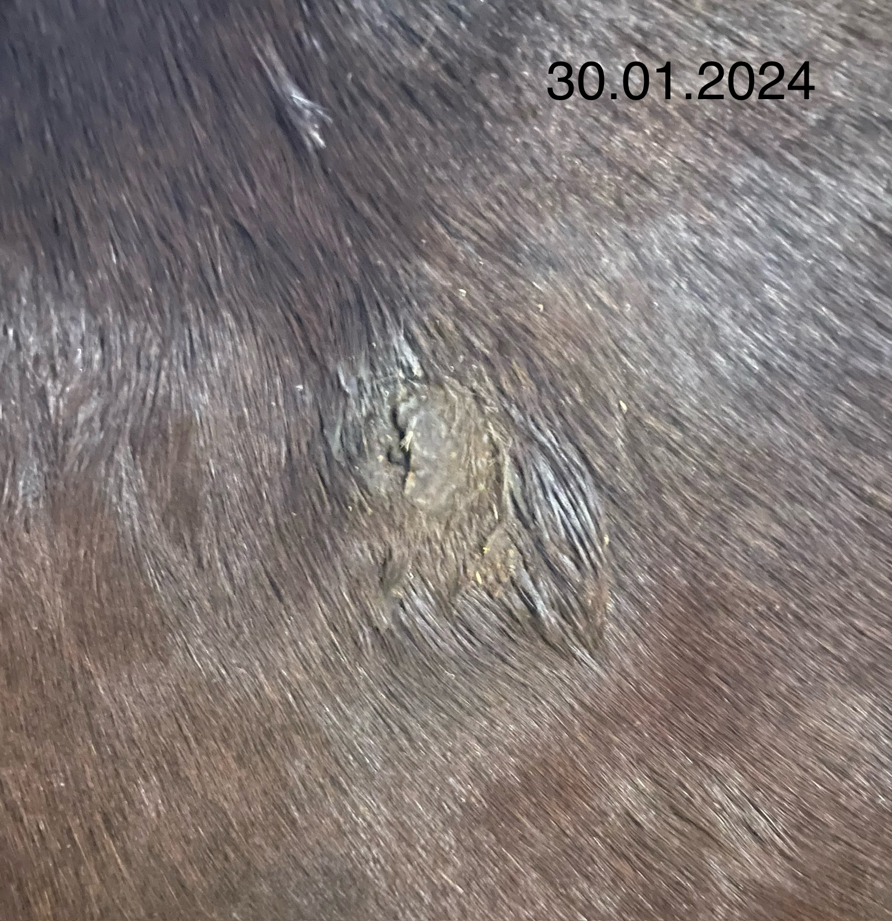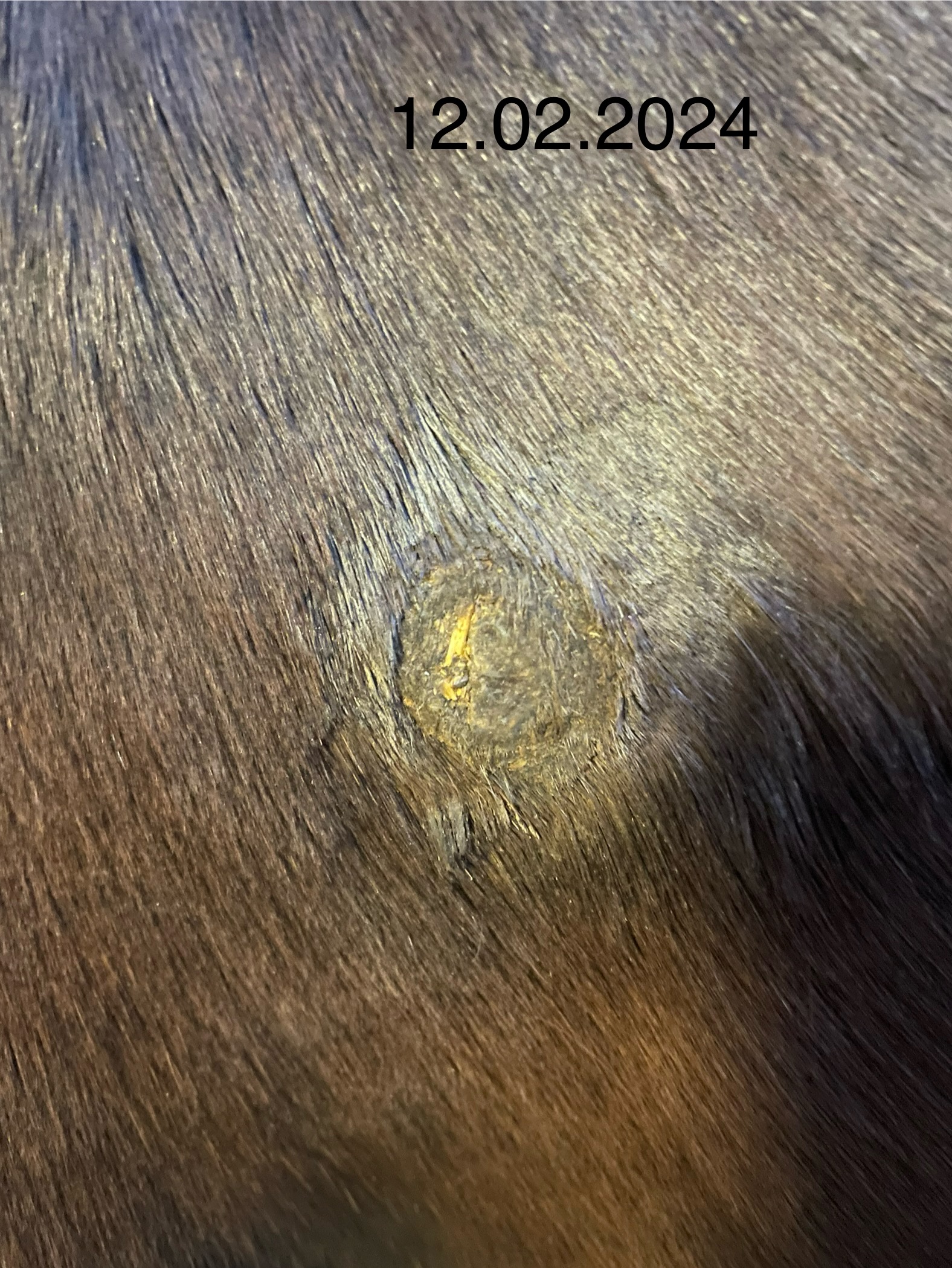 Das sich die Kruste gestern etwas abgehebt hat ist wahrscheinlich der Bewegung und dem (weichen) Sattelgurt geschuldet.