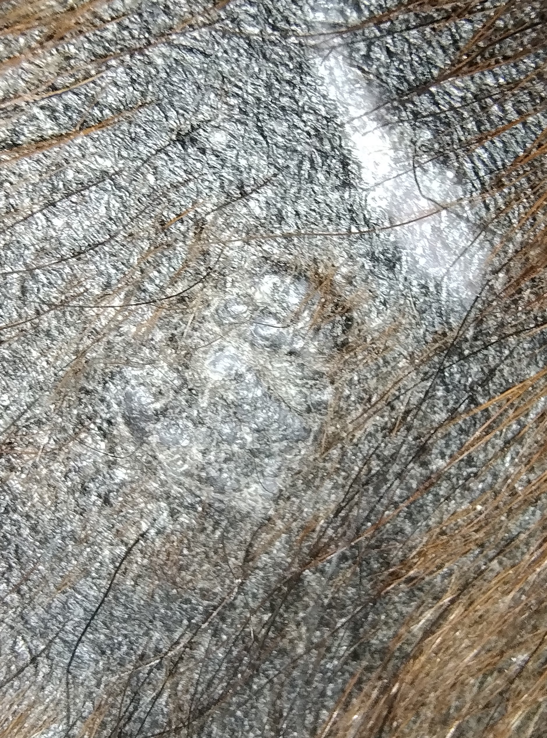 An der Flanke ist nix mehr zu finden, außer ein dunkler Schatten unter den Haaren.