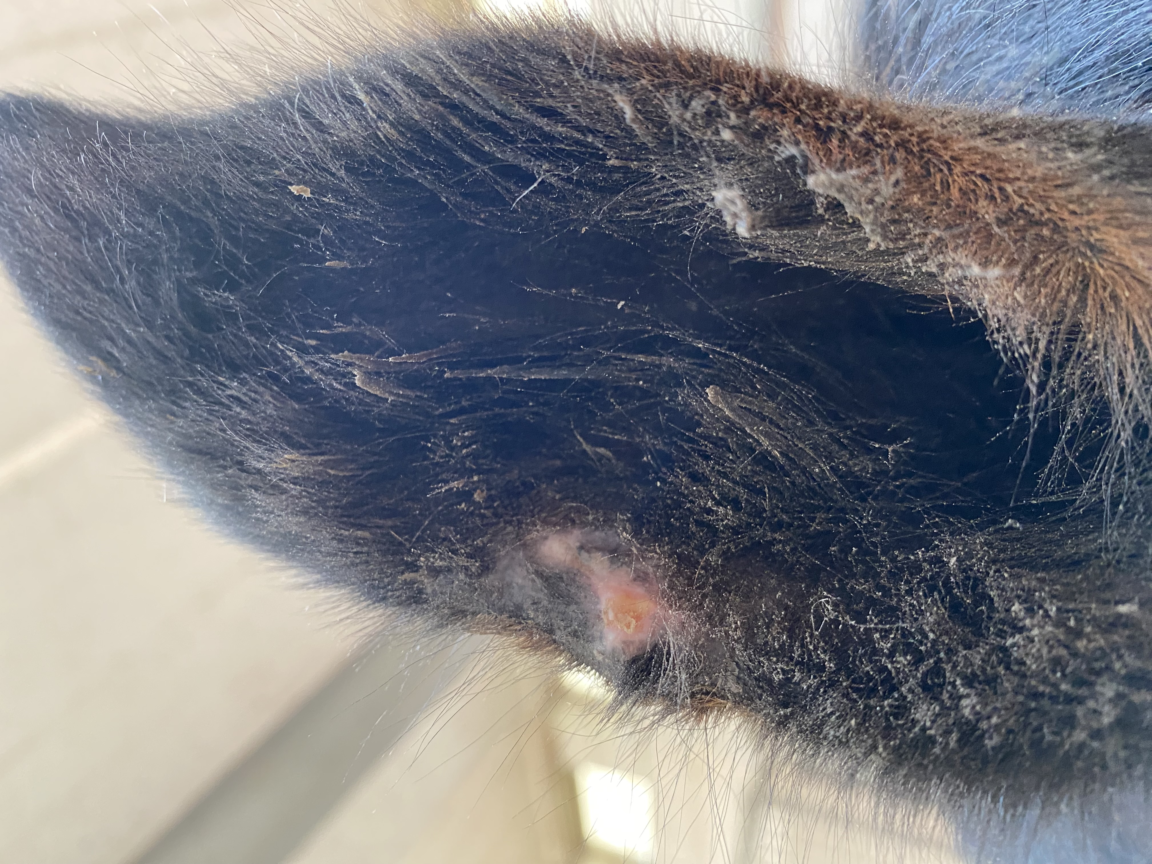 ich bräuchte mal eure Einschätzung zum Ohr: ist da noch was oder ist es nur noch etwas wunde Haut? Ich schmiere zur Zeit 1x pro Woche mit 1:5. Ich möchte die gesunde Haut nicht reizen, wenn nichts mehr ist, aber auf keinen Fall zu früh aufhören. Es sieht für mich rechts an der haarlosen Stelle noch leicht gelblich/rötlich? halt anders aus, als beim linken Teil der haarlosen Stelle, daher bin ich nicht sicher. Was meint ihr?