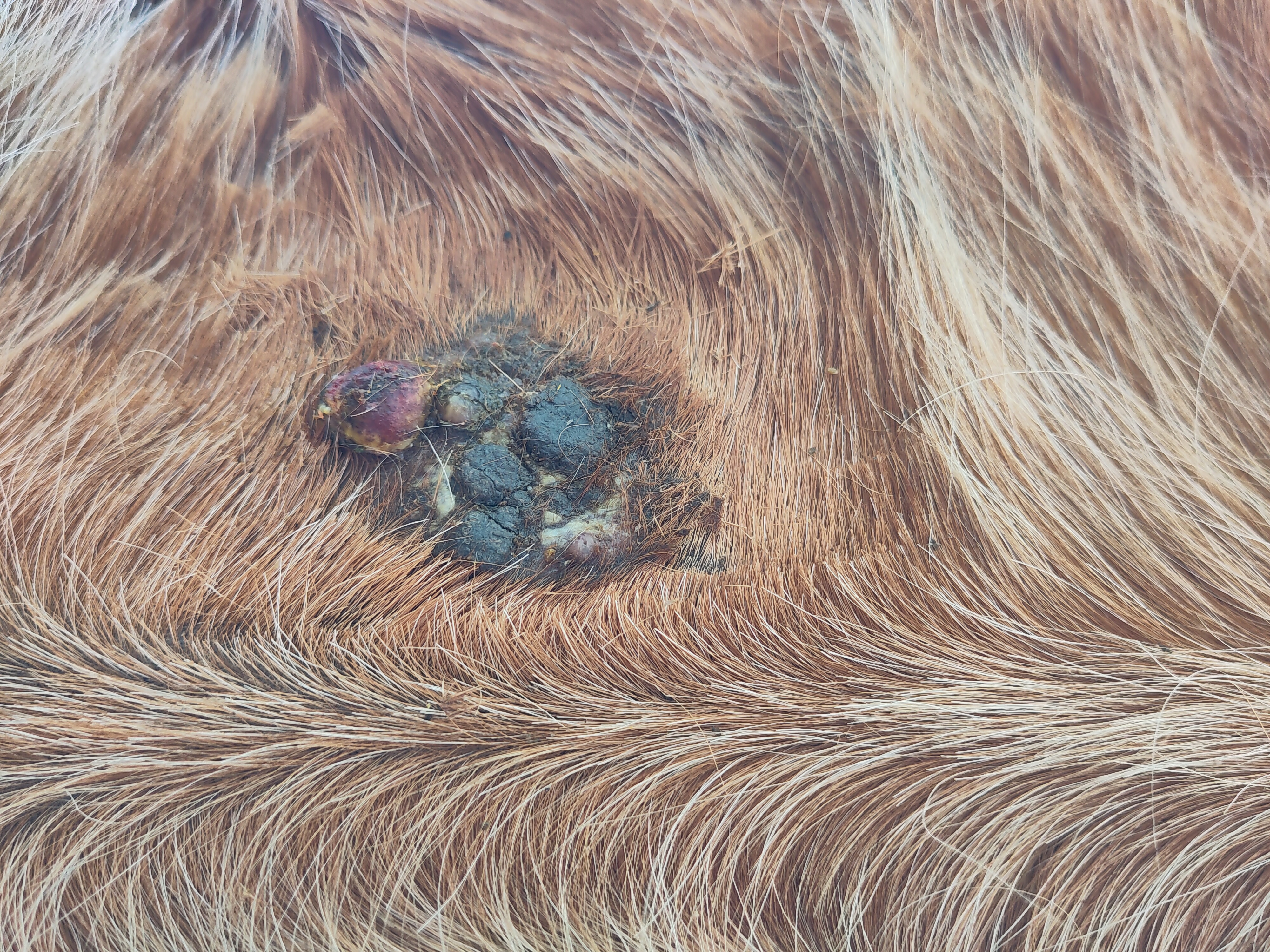 Meine Stute hat am Bauch, seitlich des Nabels seit ein paar Jahren Sarkoide. Erst waren es lange Zeit nur zwei Krusten und da sie nicht störten und sich auch nicht verändert haben, habe ich sie erstmal nur beobachtet. Vor einigen Monaten ist mir dann aufgefallen, dass es plötzlich mehr Krusten gab, danach stagnierte das Wachstum aber wieder. Die Krusten waren stets geschlossen.