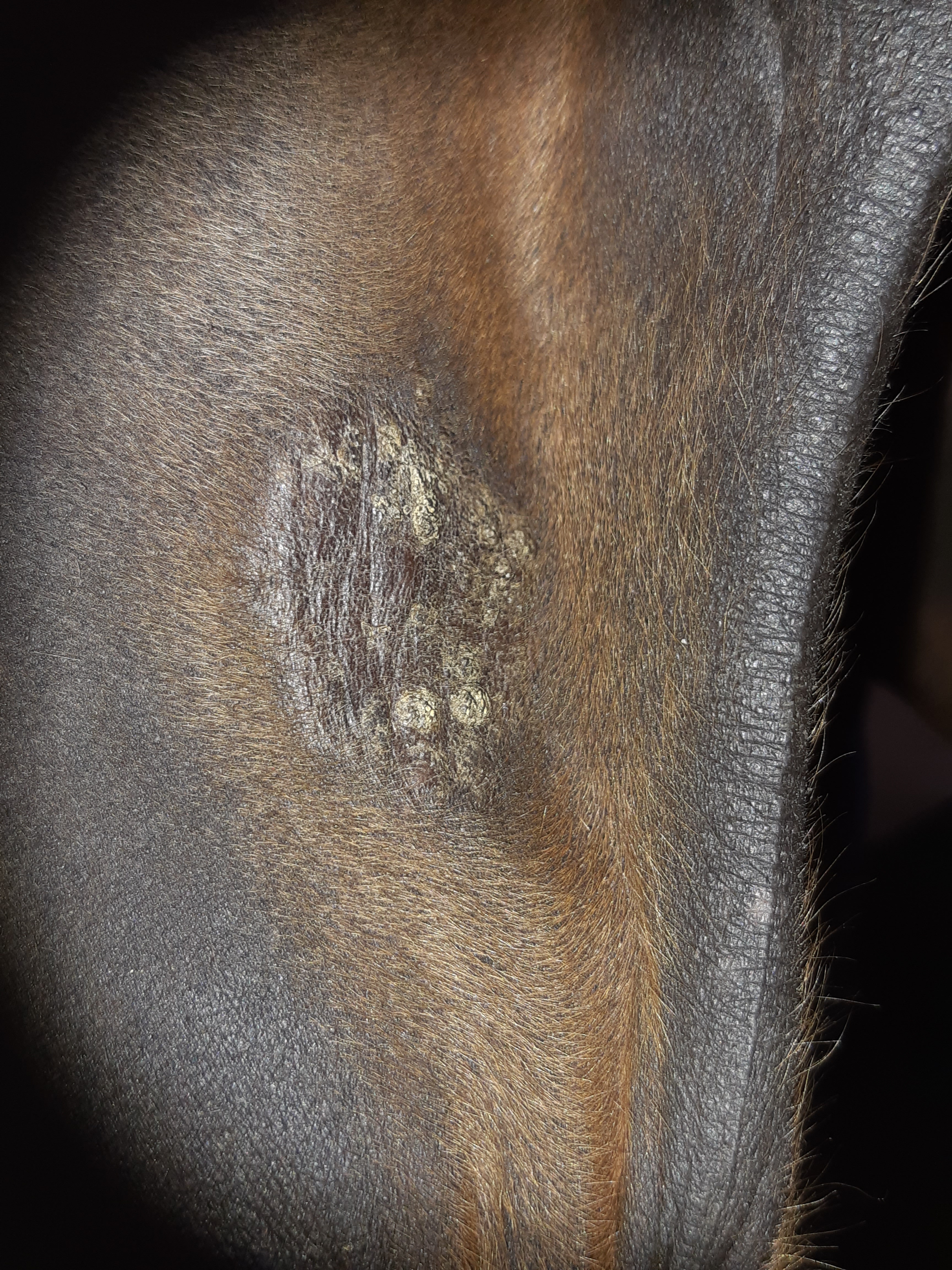 Anbei Fotos vom 28.09. Soll ich bei dem großen Sarkoid noch den kompletten Bereich einschmieren?