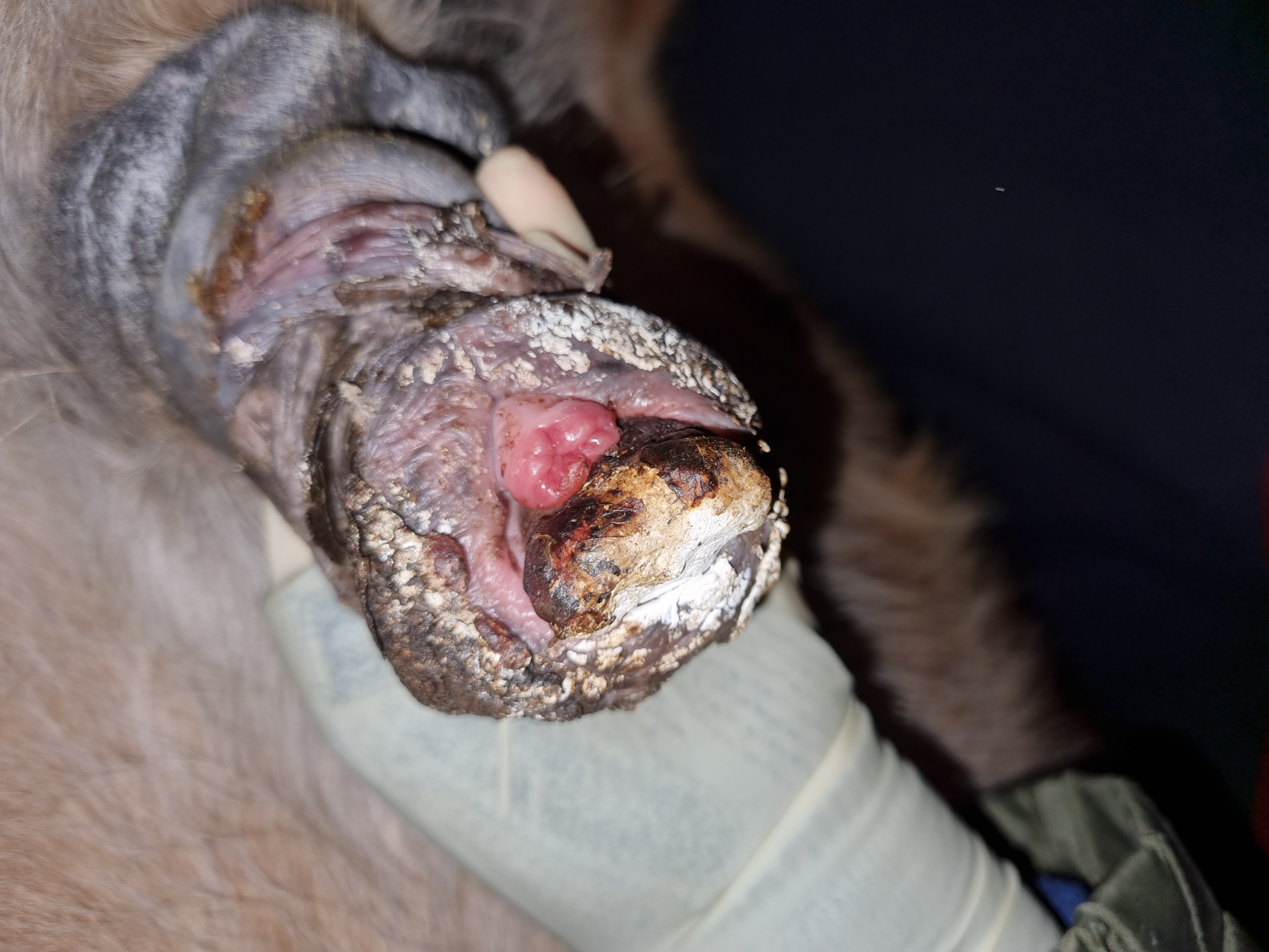 Zufälligerweise hatte unsere Renterpony aus meiner Kindheit genau das selbe mit 14, also auch genau im gleichen Alter, nur schon weiter fortgeschritten. Dort wurde dann der halbe Schlauch amputiert und er hat bis ins hohe Alter von 30 keine Probleme mehr damit gehabt.