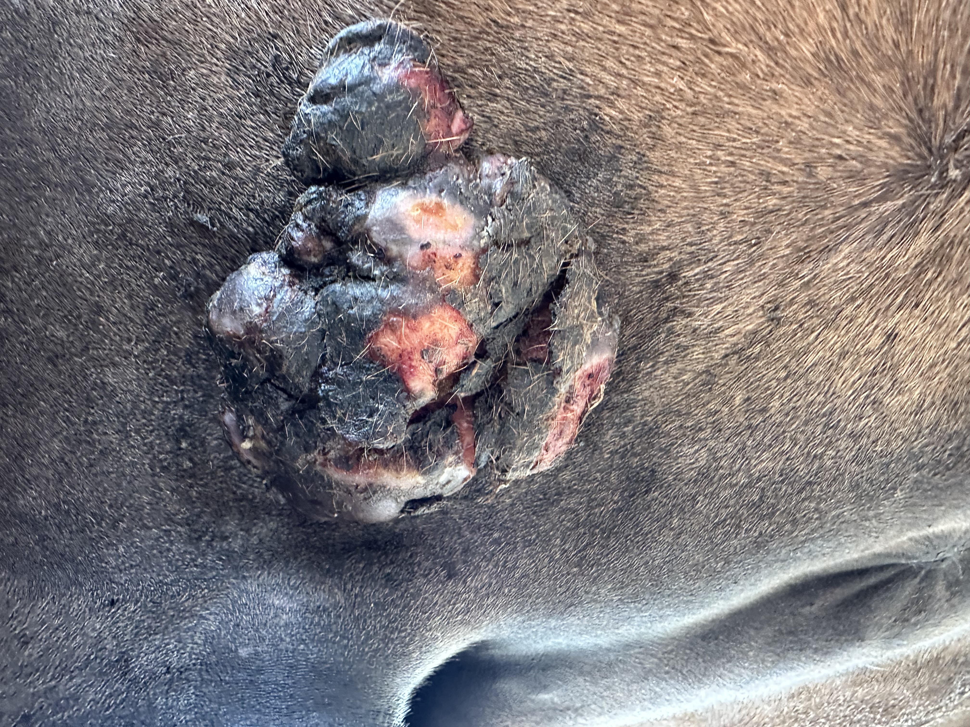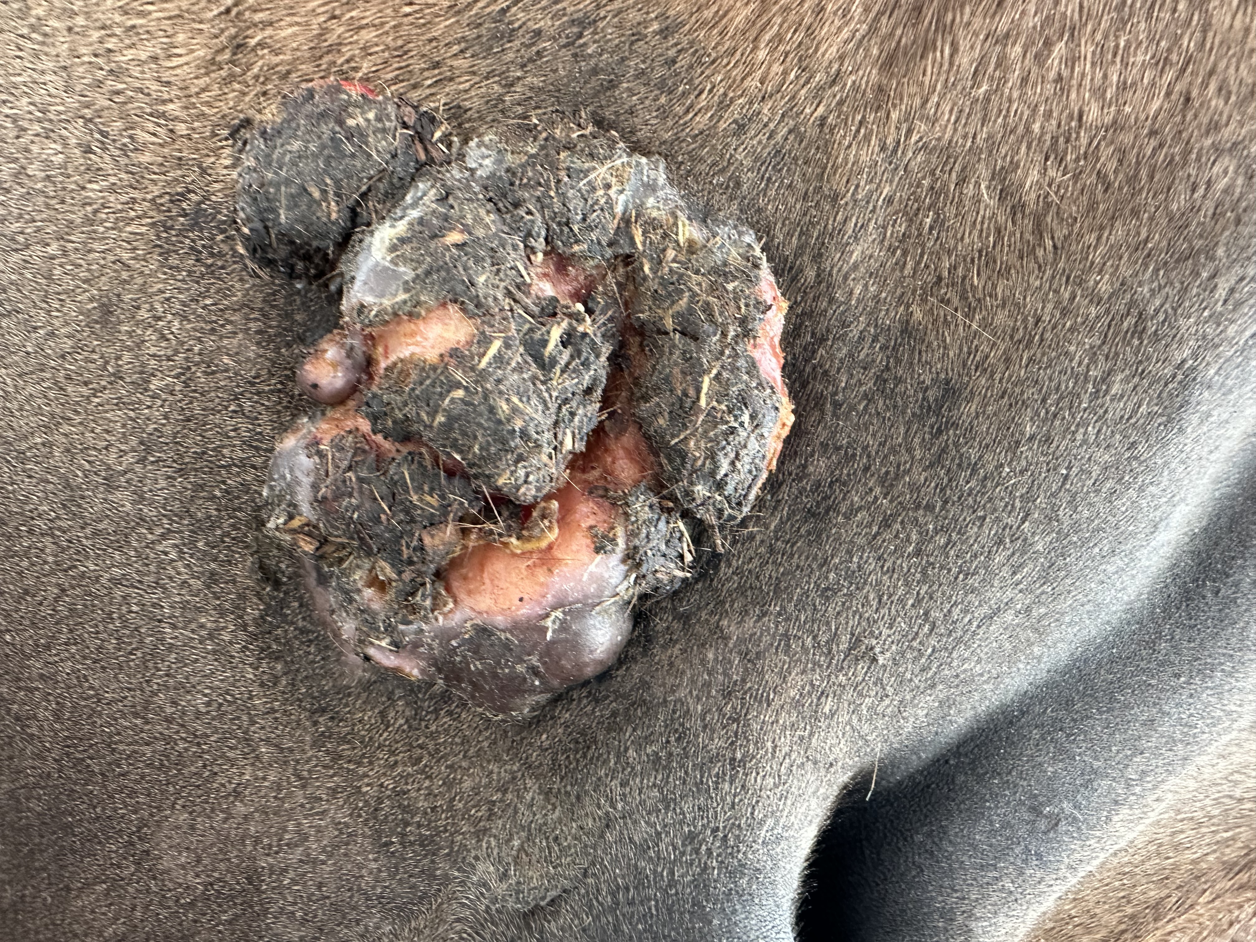 ...es sifft nun etwas, worüber die Fliegen sich sehr freuen. Ich würde mich stattdessen freuen, wenn sich an diesem kleinen knubbelartigen Auswuchs etwas tun würde. Der schlummert unter seiner dicken Kruste nur so dahin, deshalb bekommt der nun etwas mehr Aufmerksamkeit und ich versuche schön darunter zu schmieren. Oder soll ich nochmal einen Tag Vaseline pur schmieren in der Hoffnung, dass sich die Krusten mehr lösen? Aber im Großen und Ganzen bin ich soweit zufrieden, vor allem auch froh darüber, dass das schmieren an sich sogar wieder besser klappt